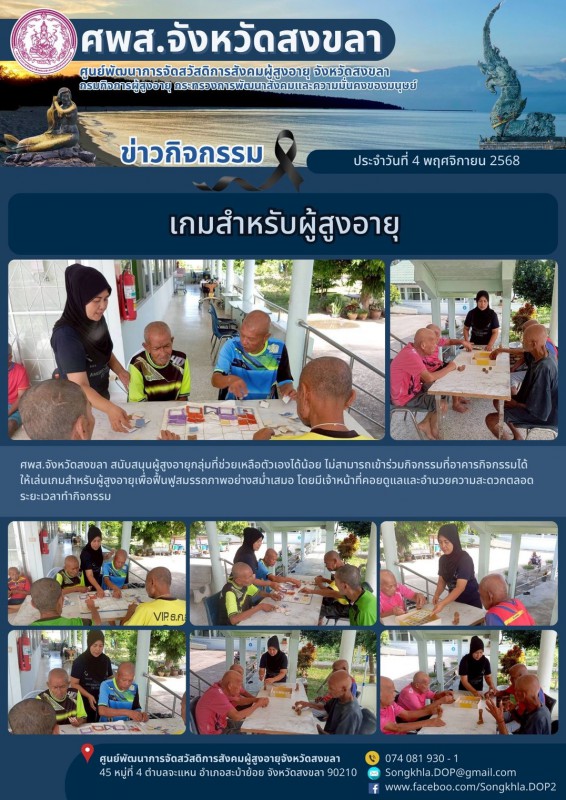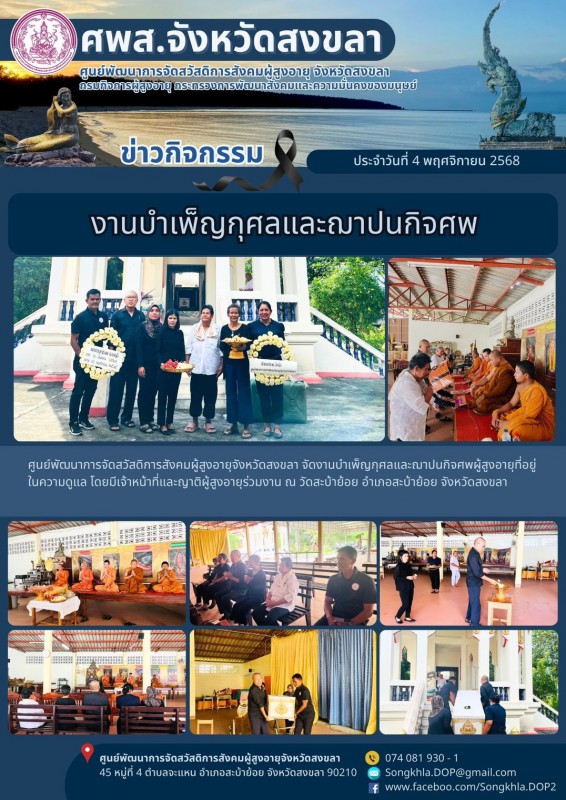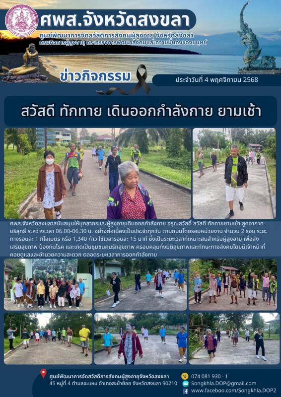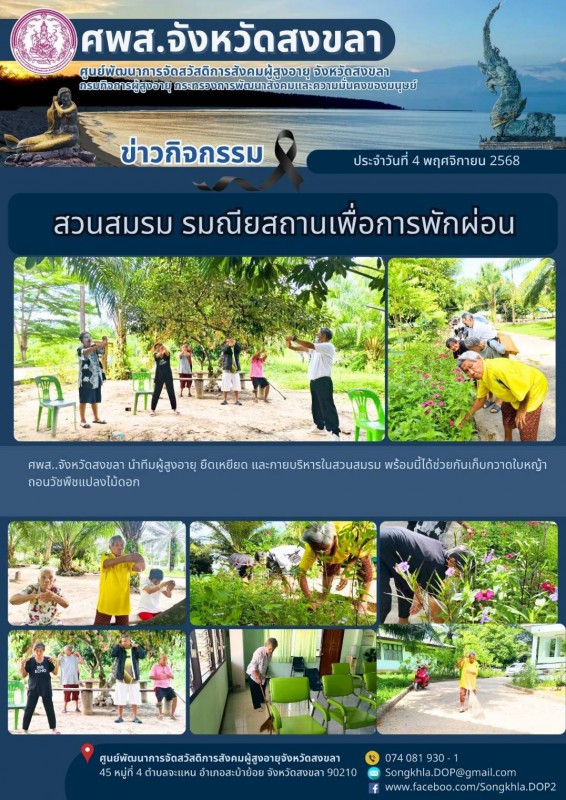 ศพส.จังหวัดสงขลา ขอรายงานกิจกรรม ประจำวันที่ 4 พฤศจิกายน 2568 โดยสังเขป ดังนี้