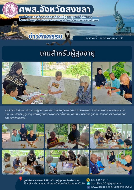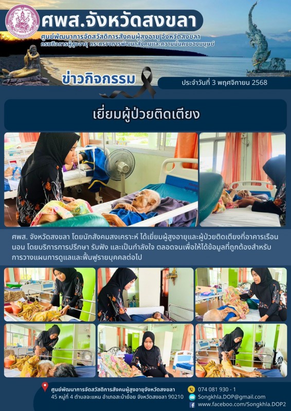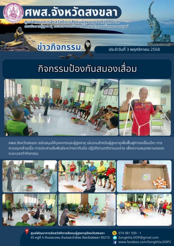 ศพส.จังหวัดสงขลา ขอรายงานกิจกรรม ประจำวันที่ 3 พฤศจิกายน 2568 โดยสังเขป ดังนี้
