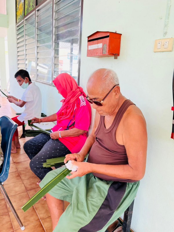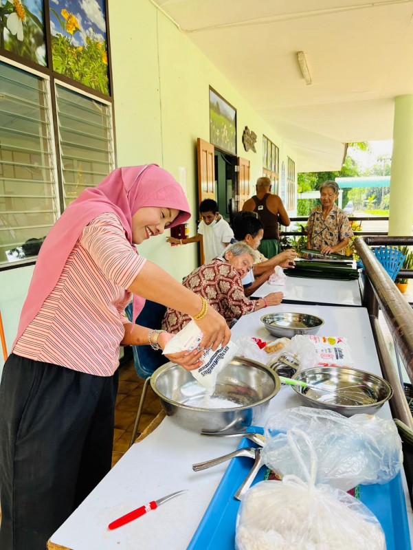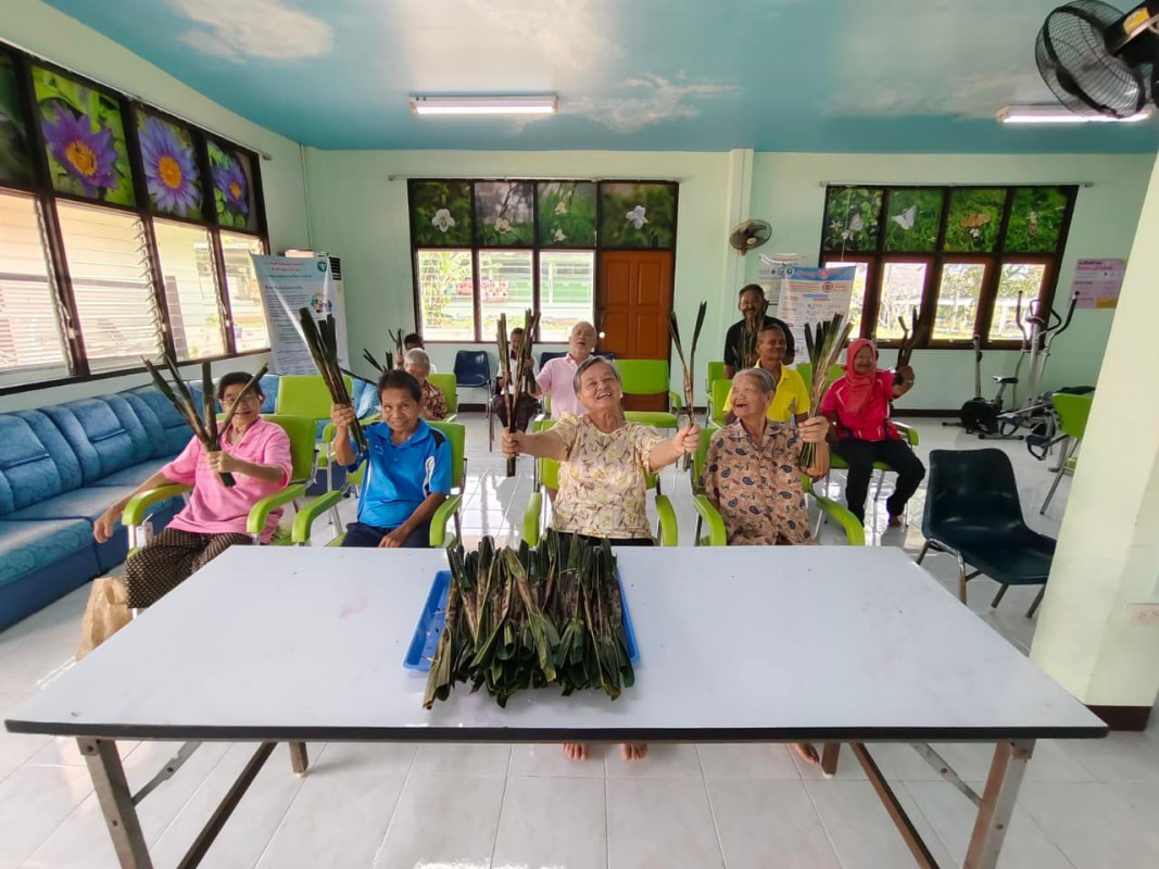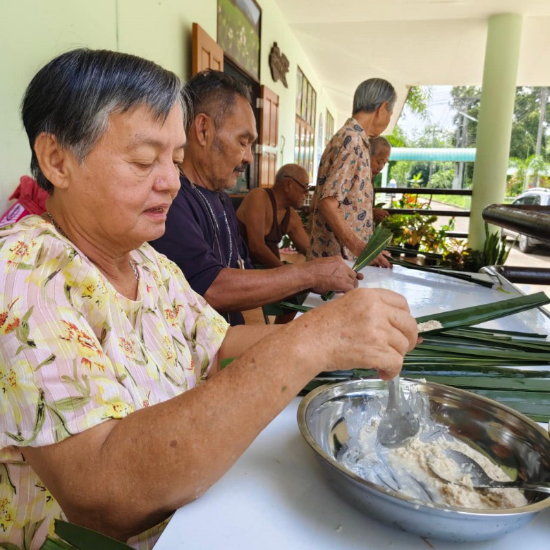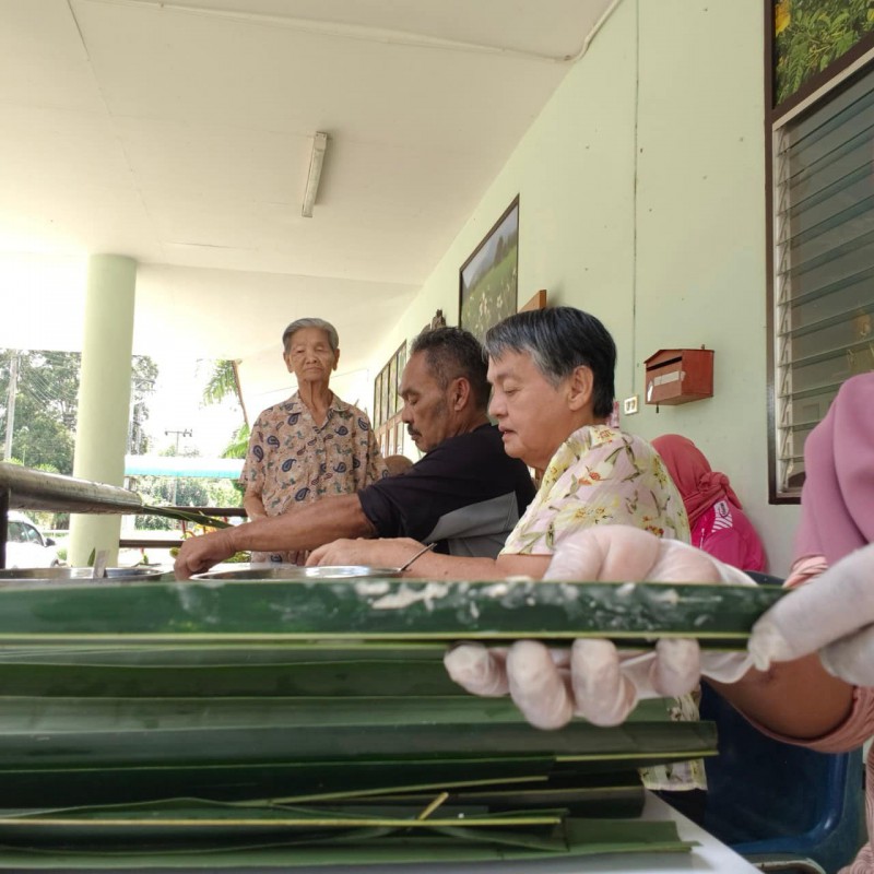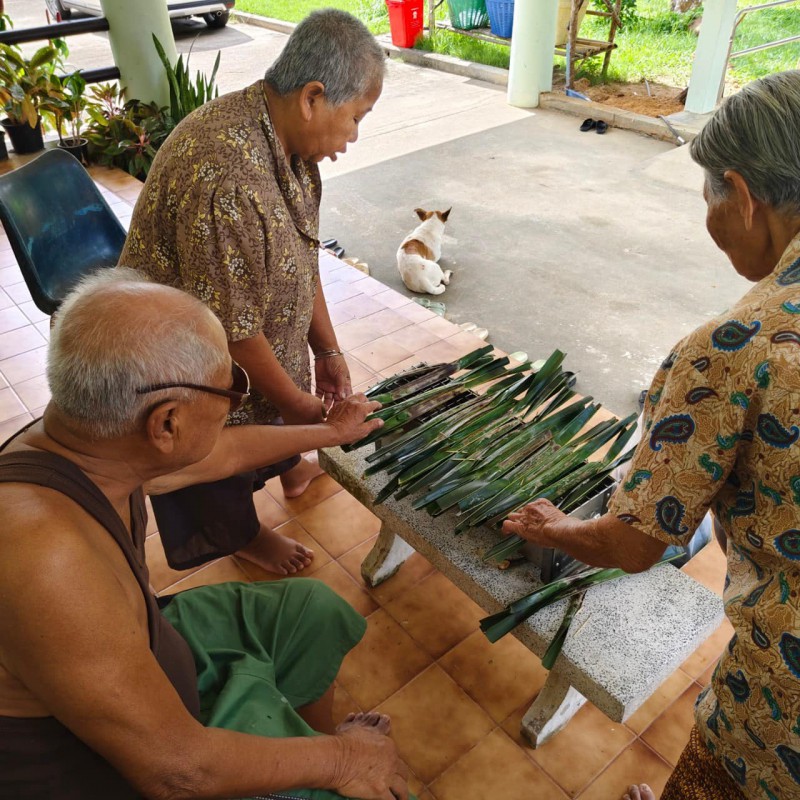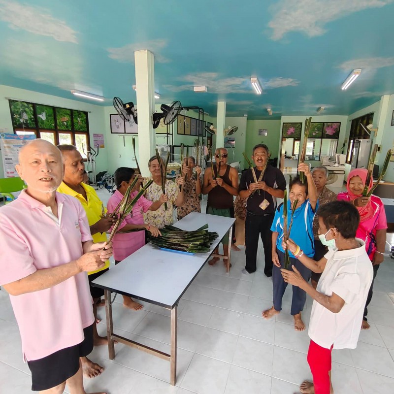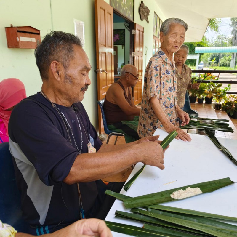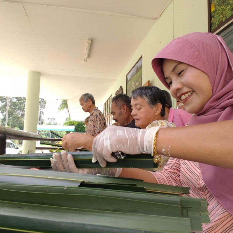 วันนี้ 5 พฤศจิกายน 2568 พี่นา ซาลีฮะ เต๊ะลูกา พร้อมน้องมายะห์ กอมารียะห์ แวสุหลง นำทีมผู้สูงอายุทำขนมจาก แต่ใช้ใบมะพร้าวที่มีอยู่ใกล้ตัวแทนใบจาก