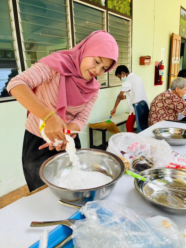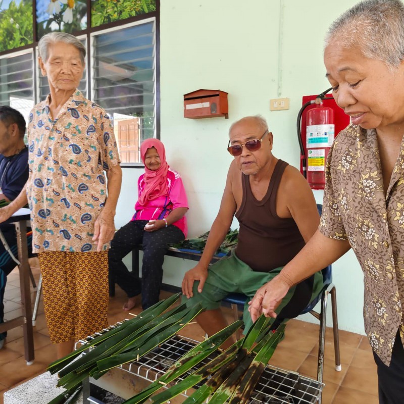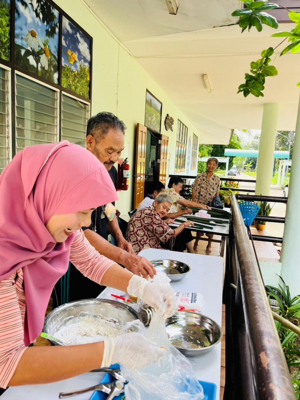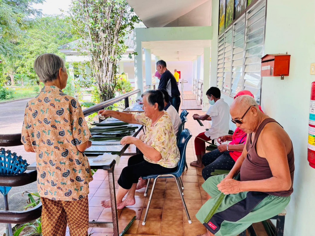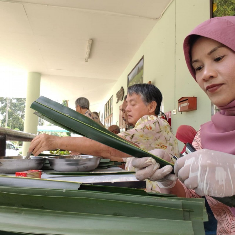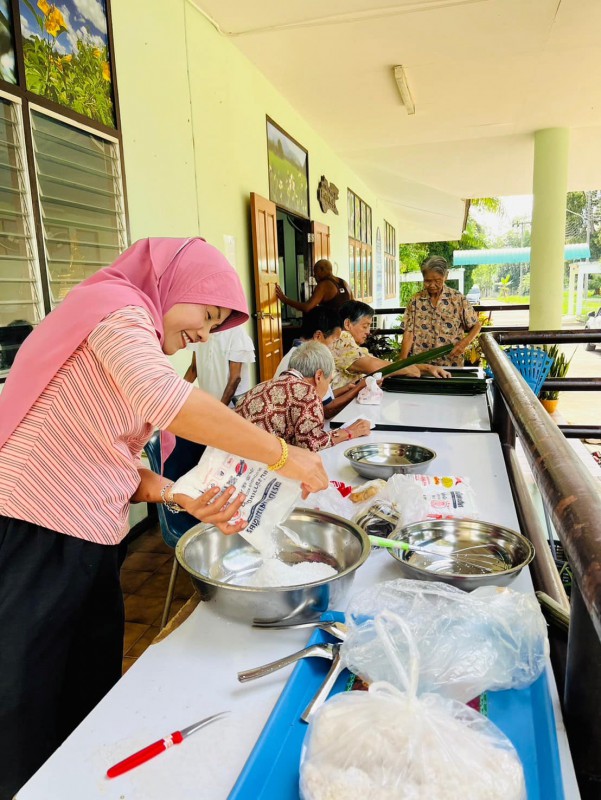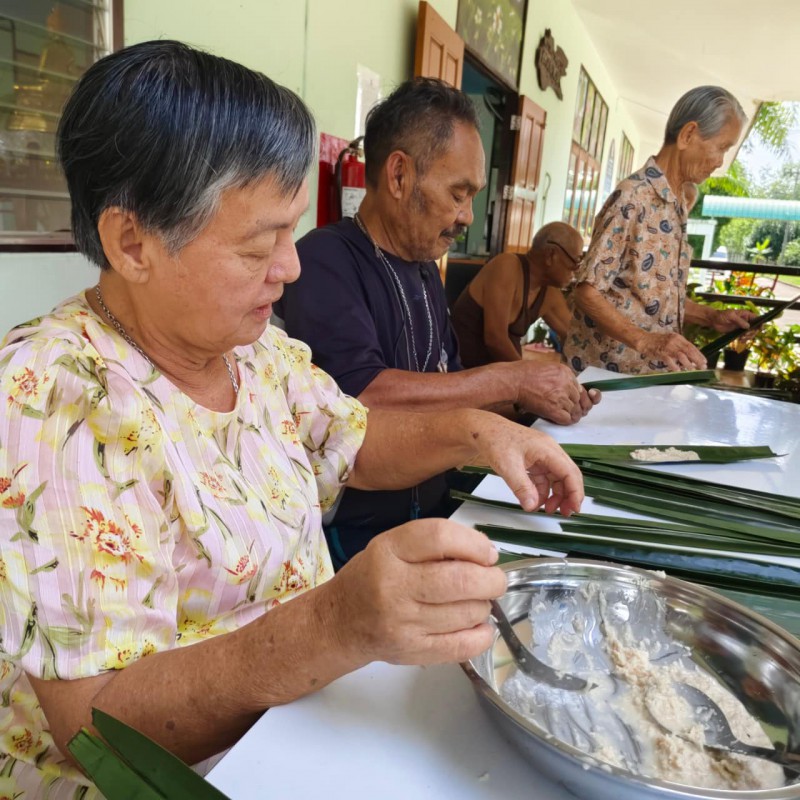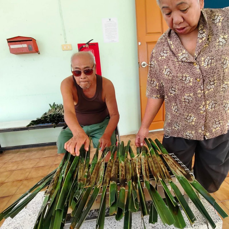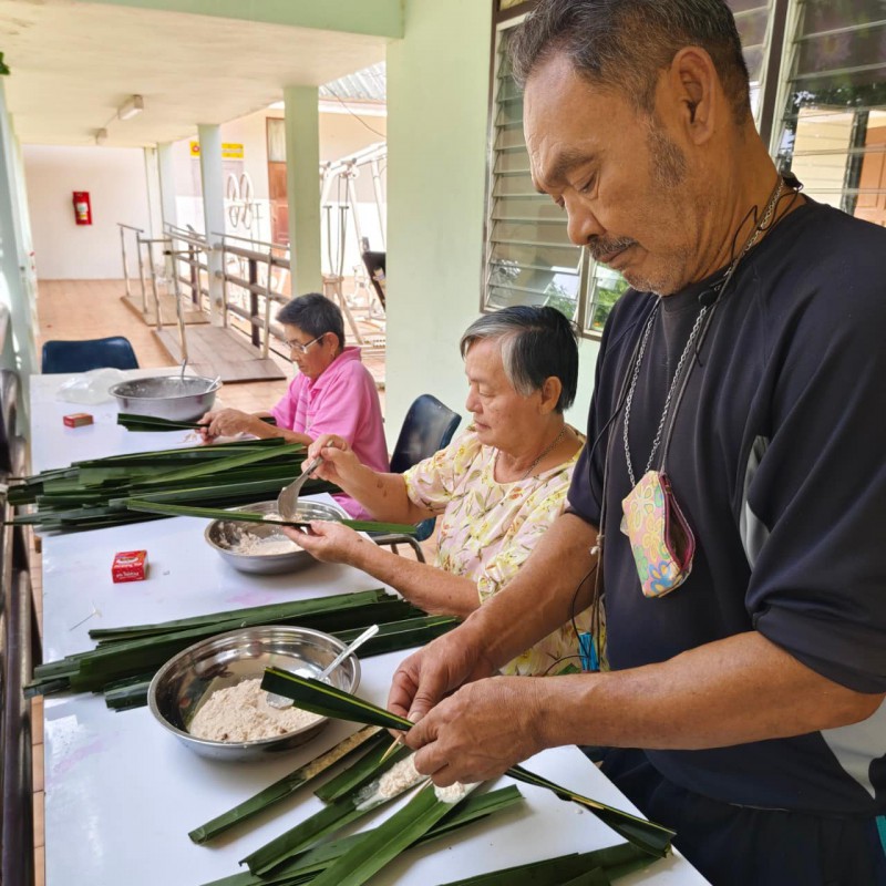 วันนี้ 5 พฤศจิกายน 2568 พี่นา ซาลีฮะ เต๊ะลูกา พร้อมน้องมายะห์ กอมารียะห์ แวสุหลง นำทีมผู้สูงอายุทำขนมจาก แต่ใช้ใบมะพร้าวที่มีอยู่ใกล้ตัวแทนใบจาก