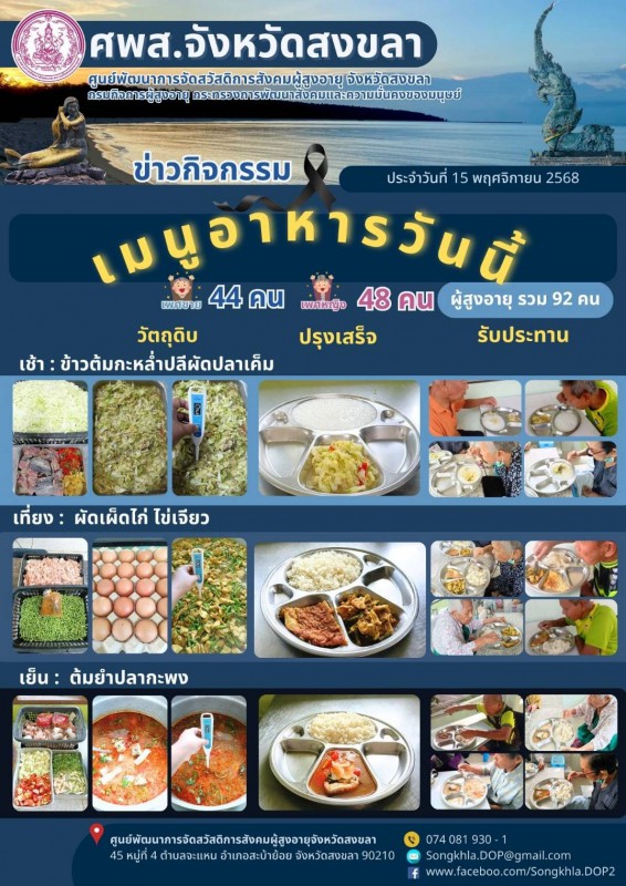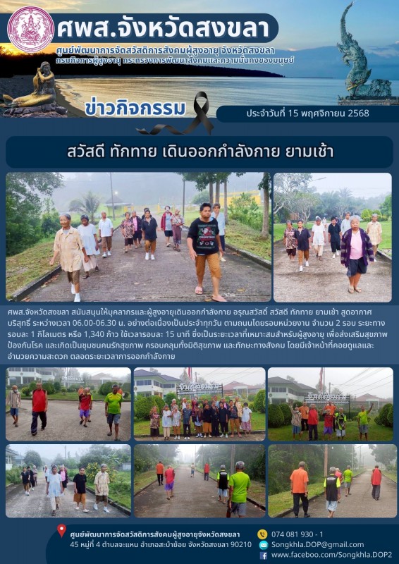ศพส.จังหวัดสงขลา ขอรายงานกิจกรรม ประจำวันที่ 15 พฤศจิกายน 2568 จำนวน 3 กิจกรรม ดังนี้