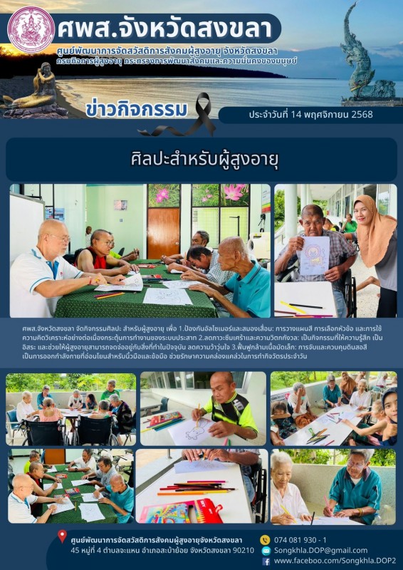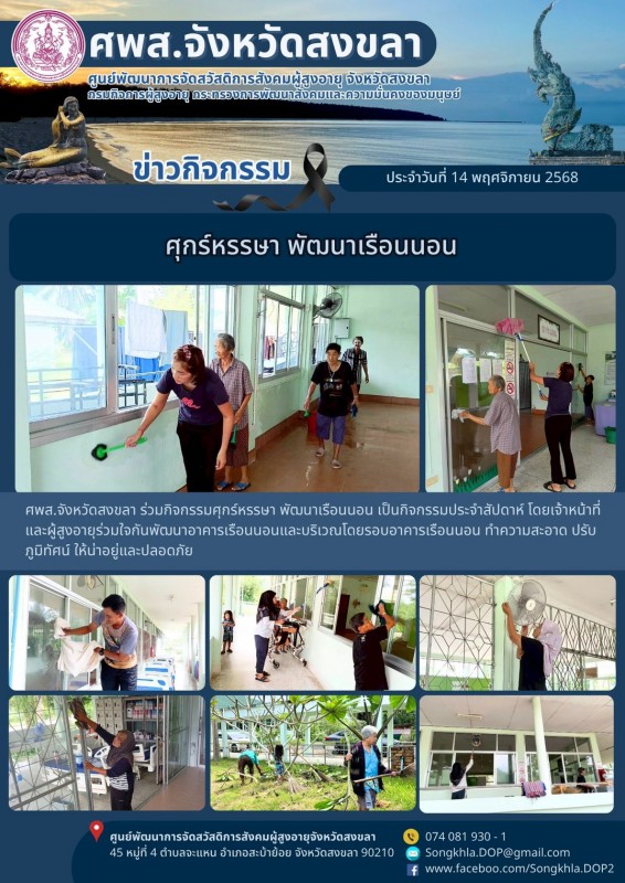 ศพส.จังหวัดสงขลา ขอรายงานกิจกรรม ประจำวันที่ 14 พฤศจิกายน 2568 จำนวน 6 กิจกรรม ดังนี้