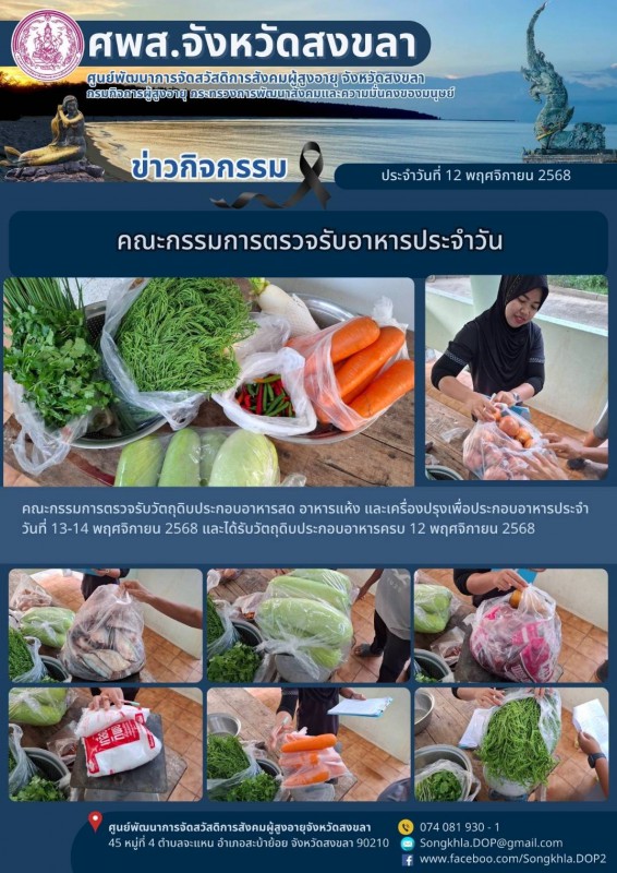 ศพส.จังหวัดสงขลา ขอรายงานกิจกรรม ประจำวันที่ 12 พฤศจิกายน 2568 จำนวน 6 กิจกรรม ดังนี้