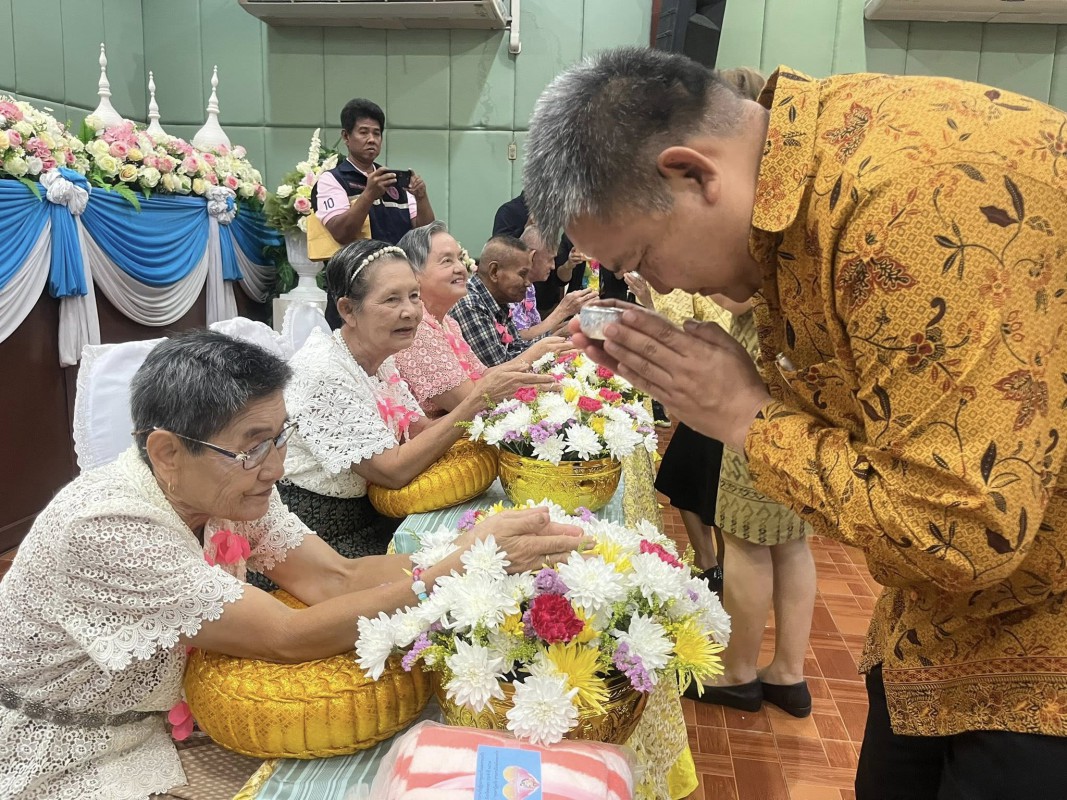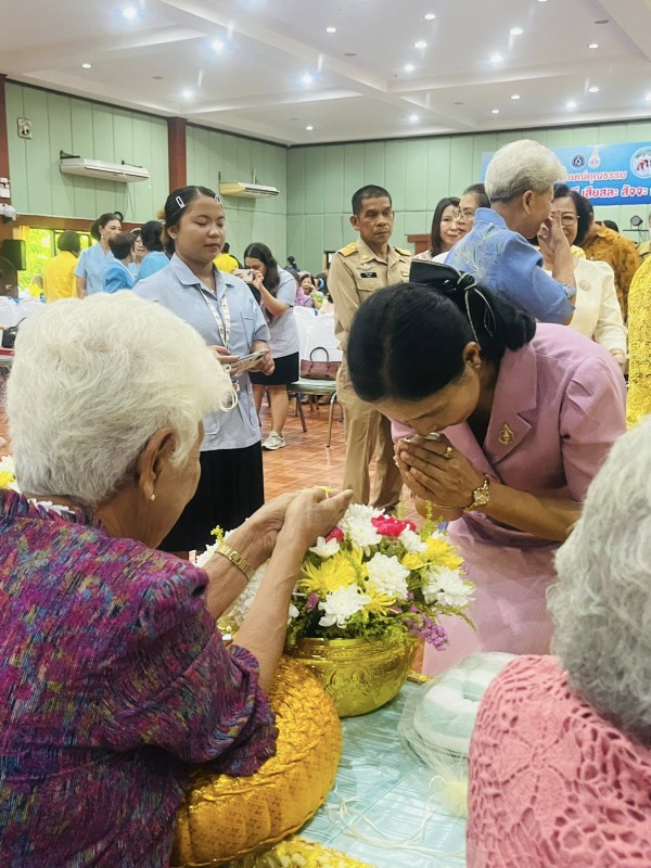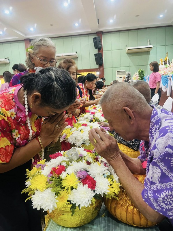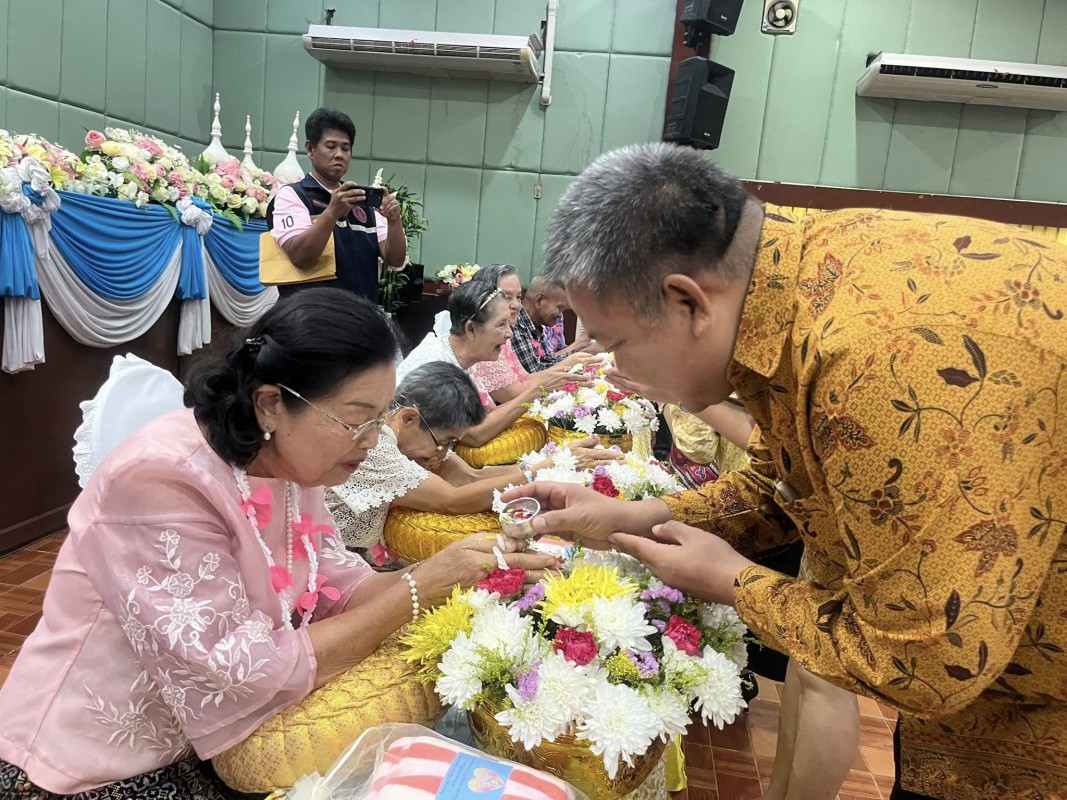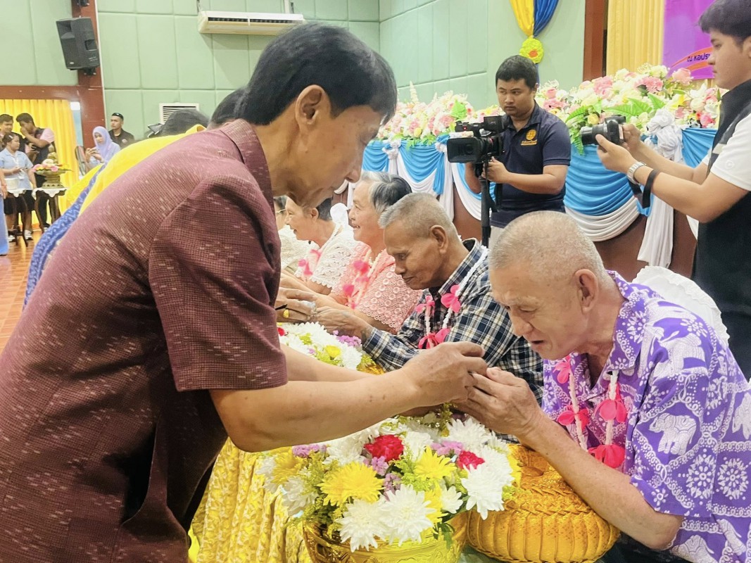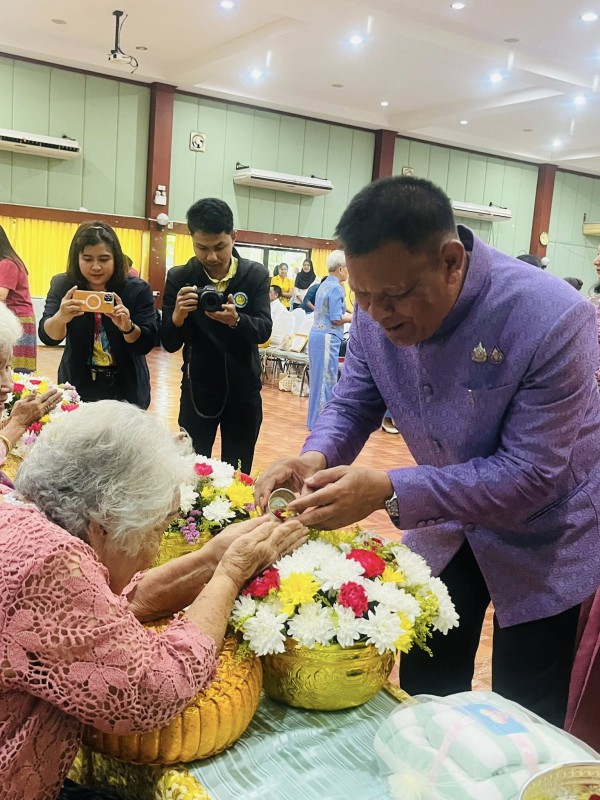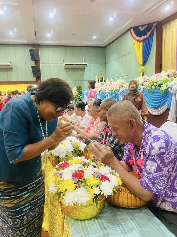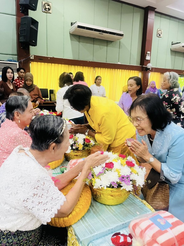 โอกาสนี้ ศพส.จังหวัดสงขลา นำผู้สูงอายุ ที่พึงได้รับการยกย่อง จำนวน 5 ท่าน เพื่อรดน้ำขอพร ณ หอประชุมวิทยาลัยพยาบาลบรมราชชนนี สงขลา ตำบลบ่อยาง อำเภอเมืองสงขลา จังหวัดสงขลา