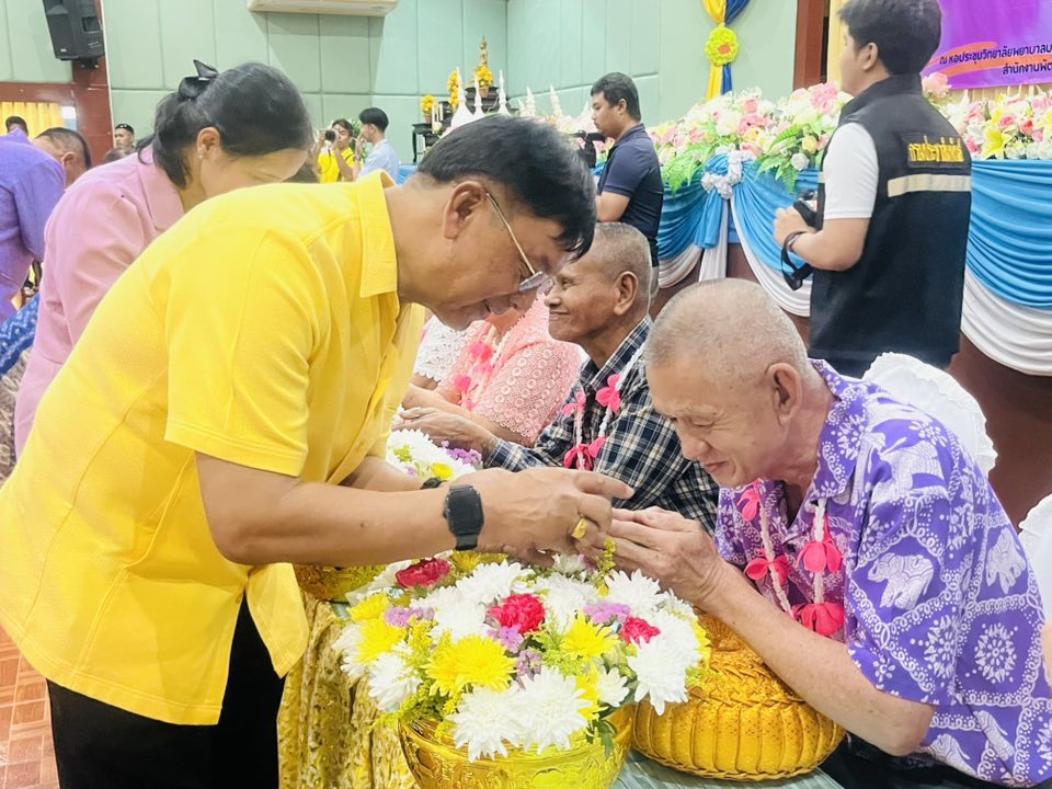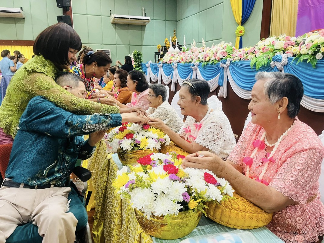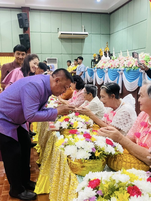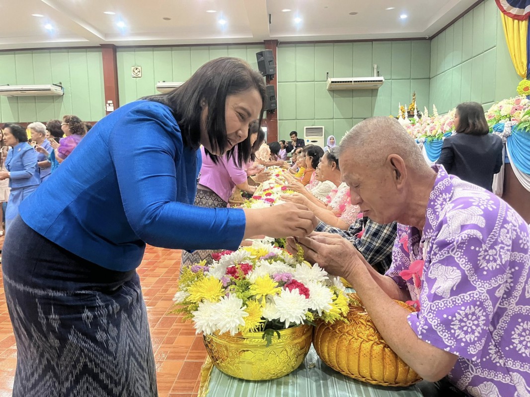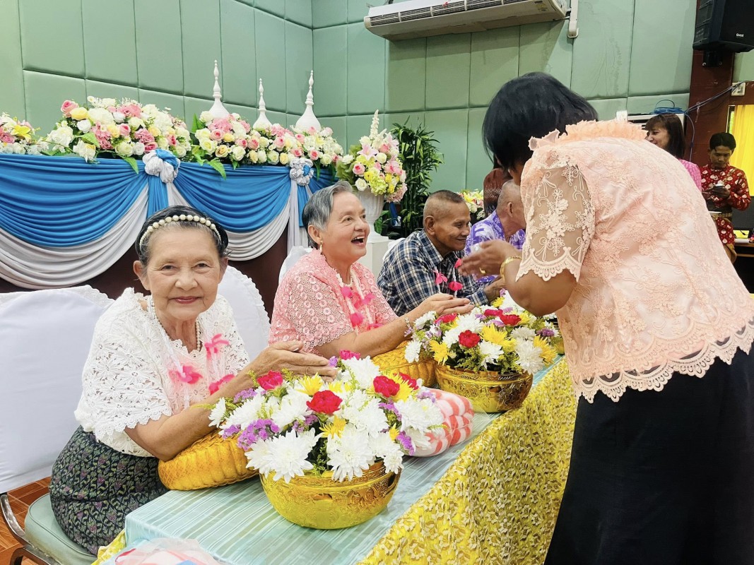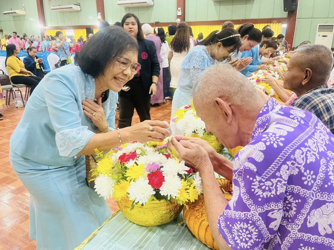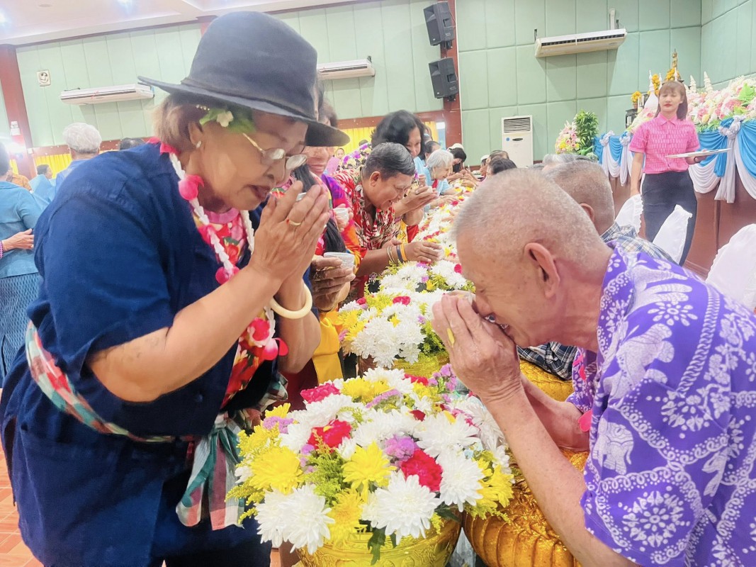 โอกาสนี้ ศพส.จังหวัดสงขลา นำผู้สูงอายุ ที่พึงได้รับการยกย่อง จำนวน 5 ท่าน เพื่อรดน้ำขอพร ณ หอประชุมวิทยาลัยพยาบาลบรมราชชนนี สงขลา ตำบลบ่อยาง อำเภอเมืองสงขลา จังหวัดสงขลา