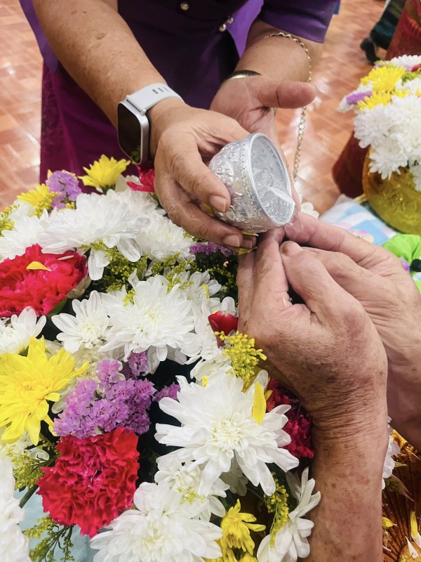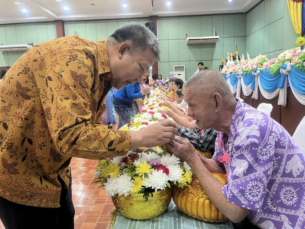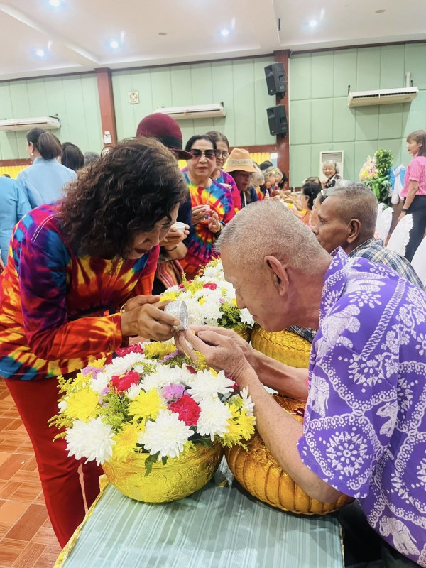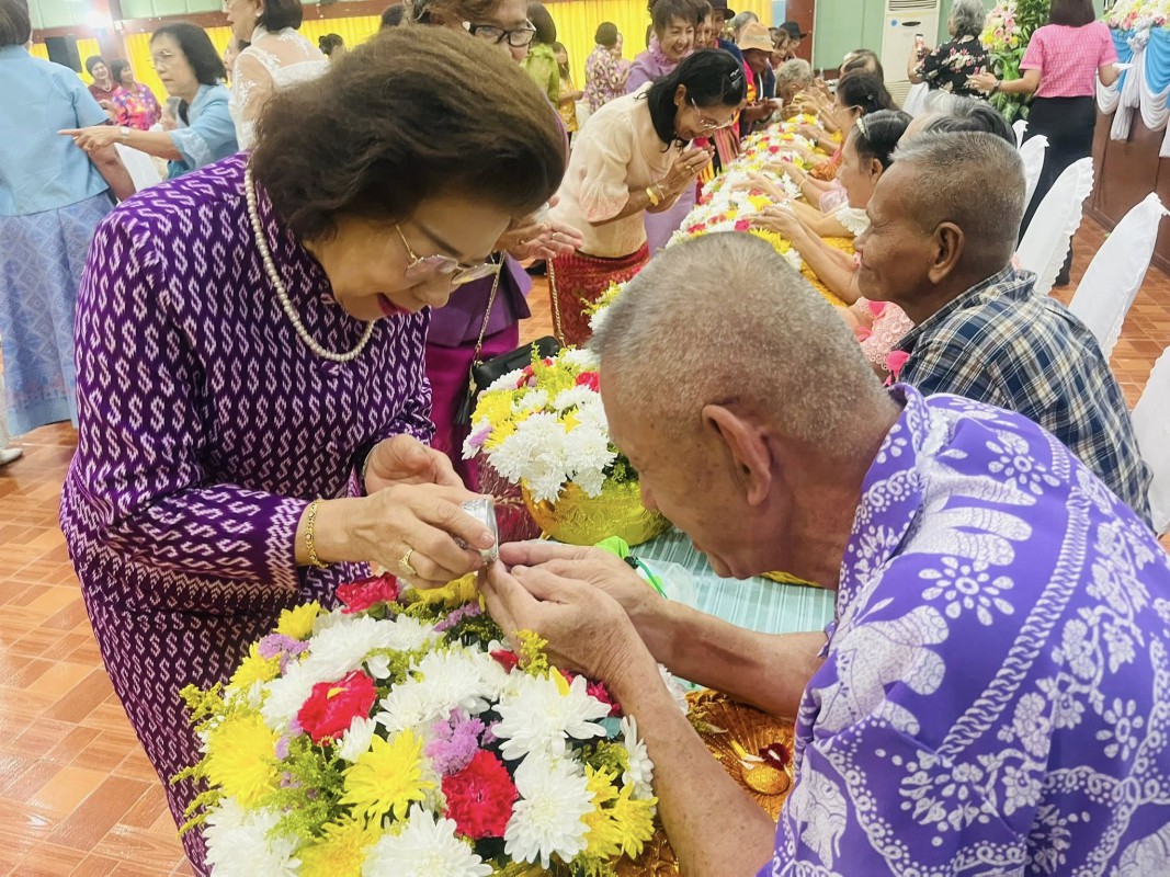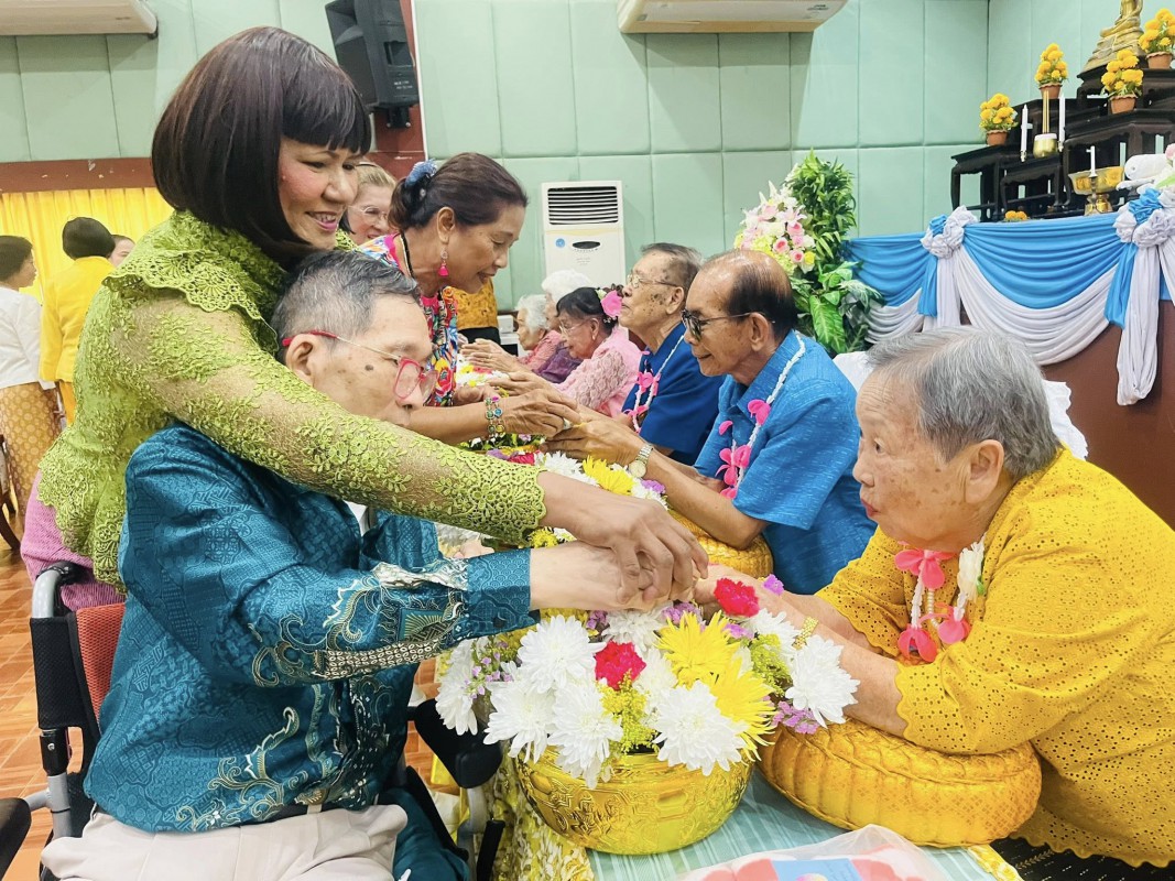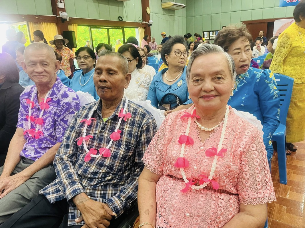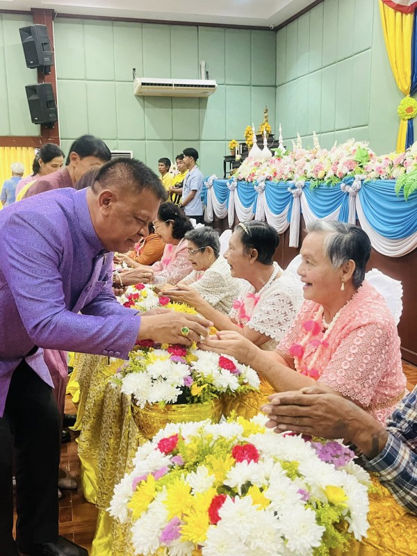 โอกาสนี้ ศพส.จังหวัดสงขลา นำผู้สูงอายุ ที่พึงได้รับการยกย่อง จำนวน 5 ท่าน เพื่อรดน้ำขอพร ณ หอประชุมวิทยาลัยพยาบาลบรมราชชนนี สงขลา ตำบลบ่อยาง อำเภอเมืองสงขลา จังหวัดสงขลา