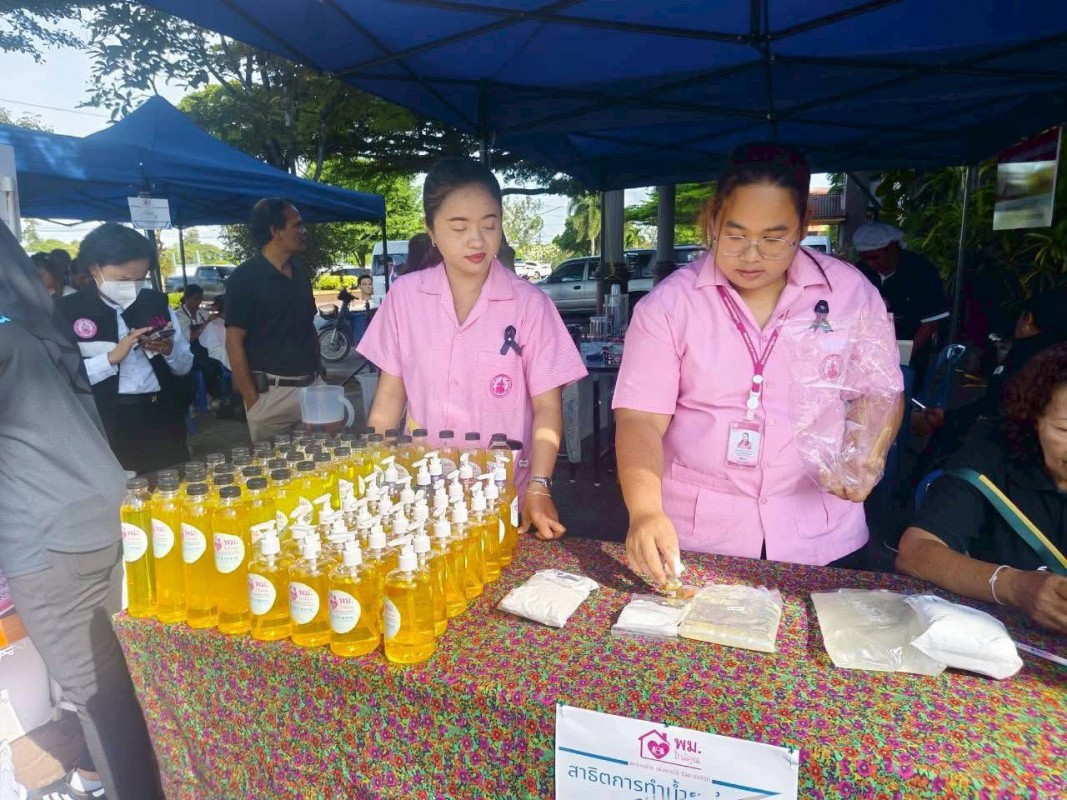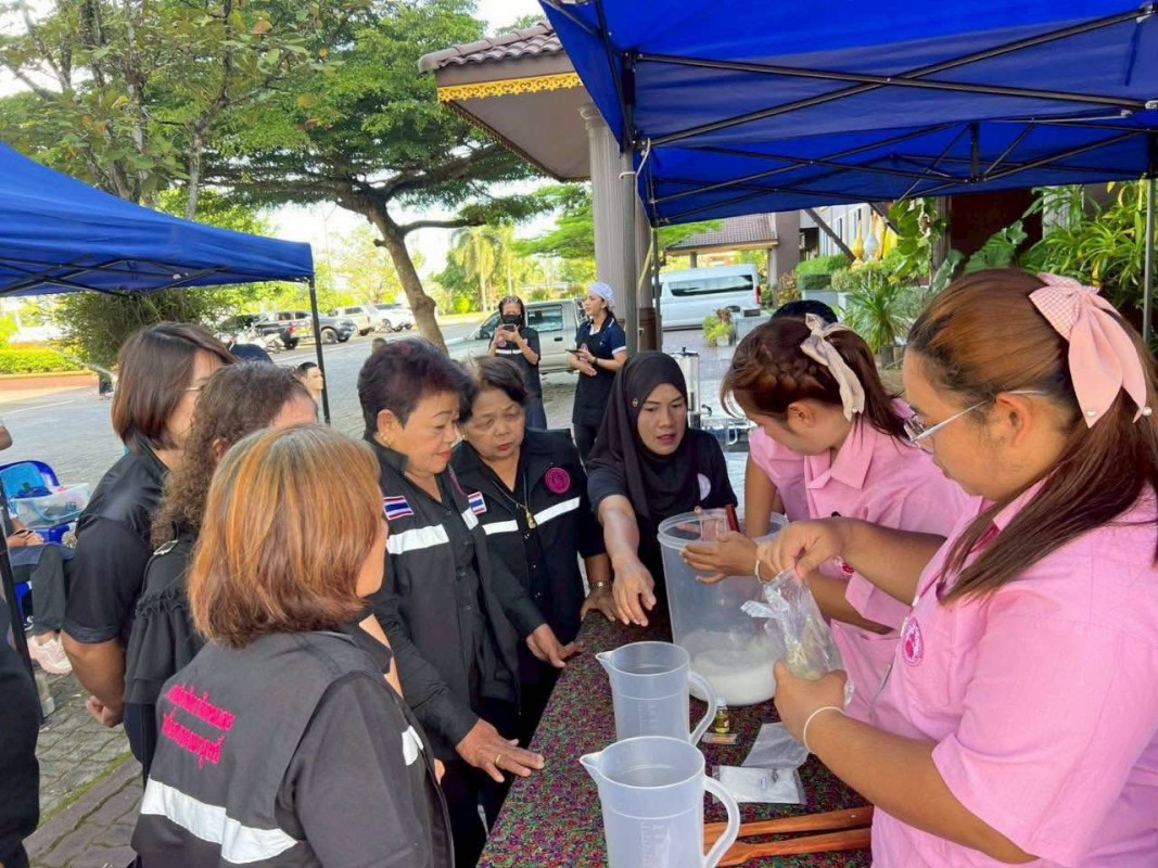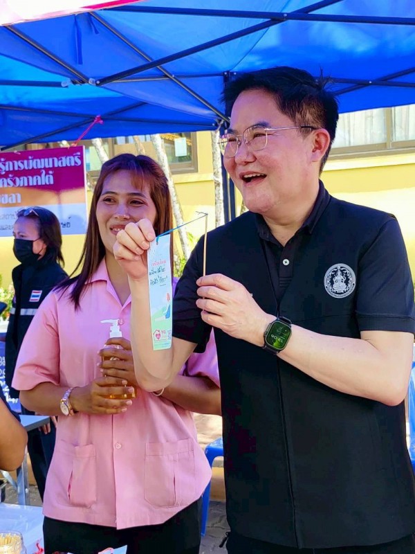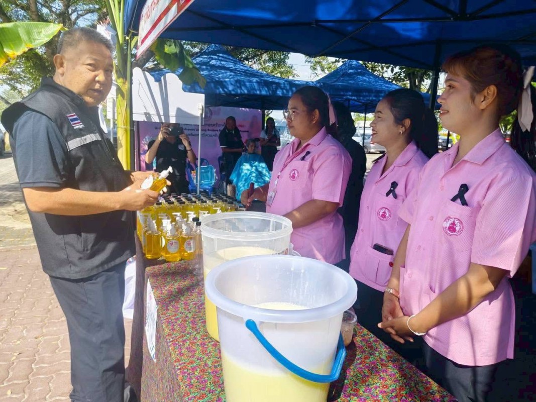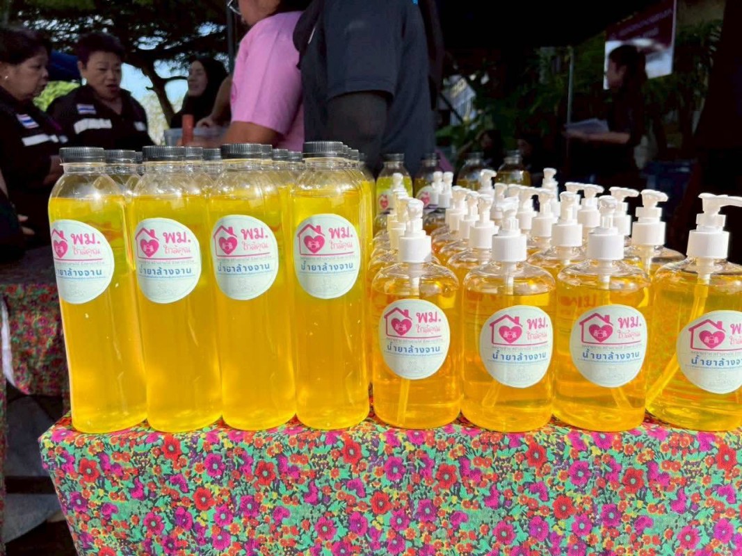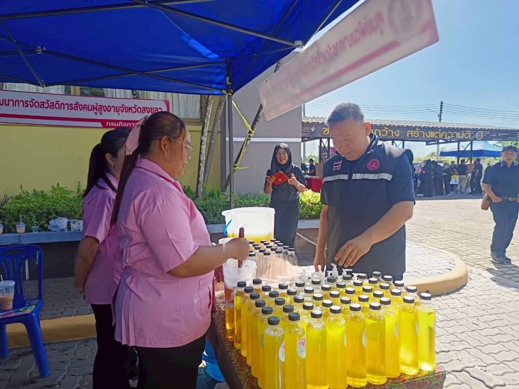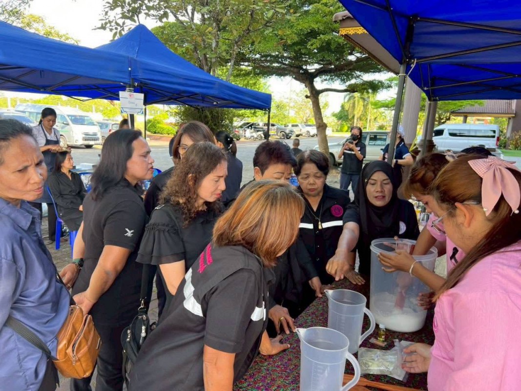 ในโอกาสนี้ ศพส.จังหวัดสงขลา ได้สาธิตและส่งมอบผลิตภัณฑ์น้ำยาล้างจานให้กับผู้เข้าร่วมกิจกรรม ภายใต้แนวทางลดรายจ่ายในครัวเรือน