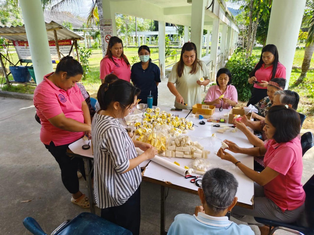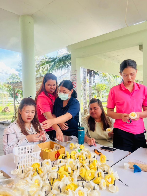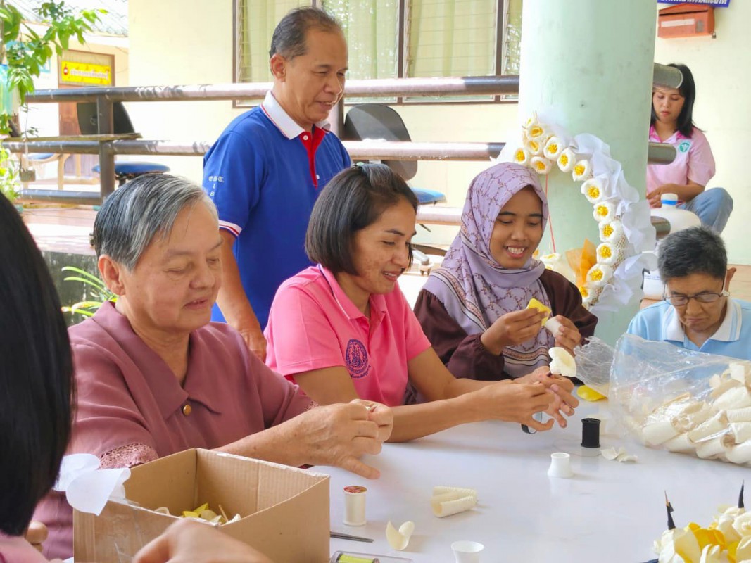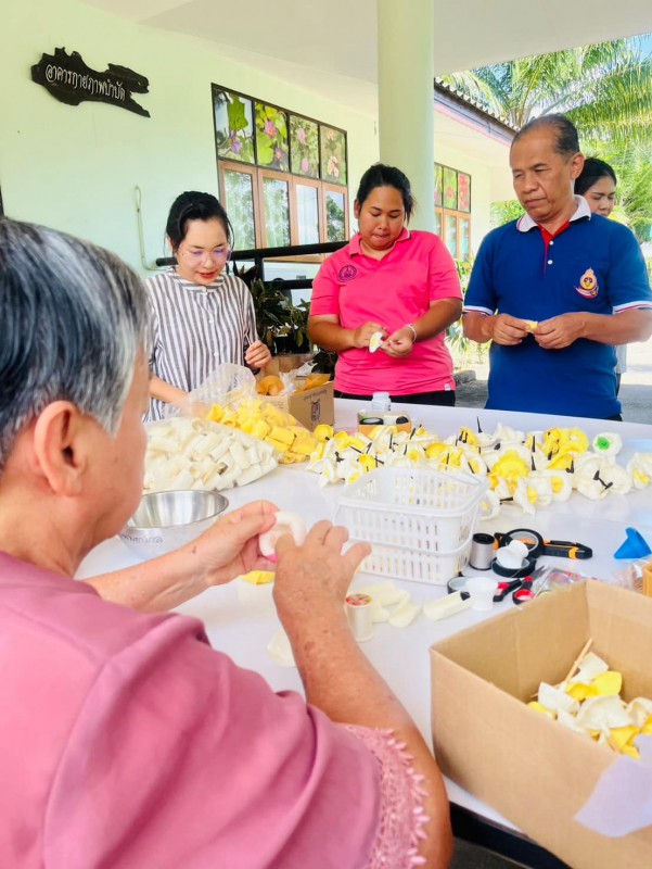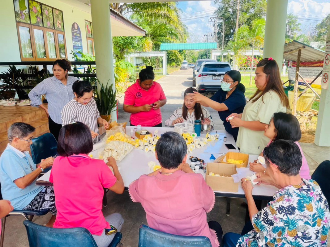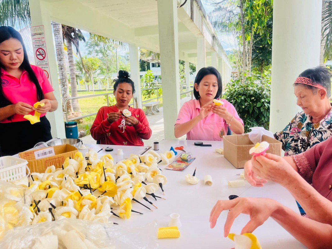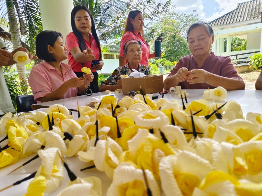 วันศุกร์ที่ 21 กุมภาพันธ์ 2568 ผู้เข้ารับการฝึกอบรมตามโครงการผู้บริบาลผู้สูงอายุในชุมชน เข้าร่วมกิจกรรมอาชีวบำบัดผลิตดอกไม้จันทน์ และพวงหรีดดอกไม้จันทน์ หนึ่งในกิจกรรมอาชีวบำบัดที่สำคัญ