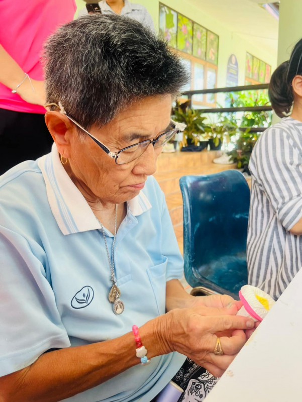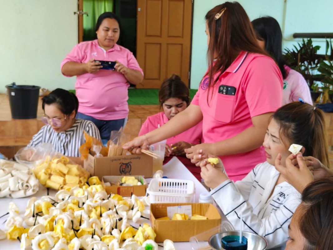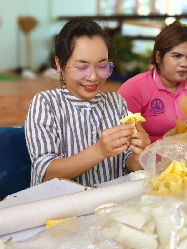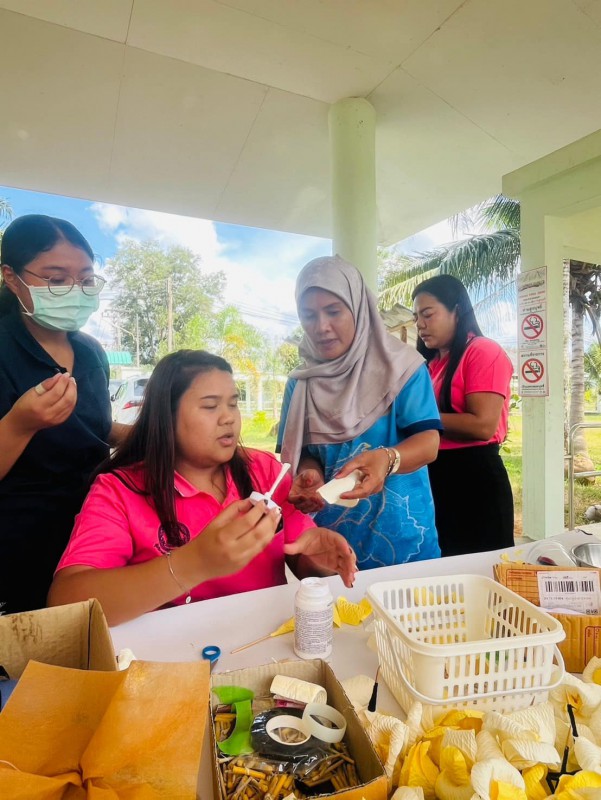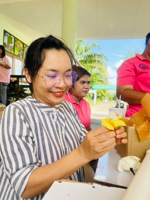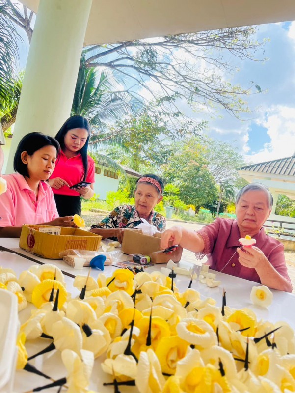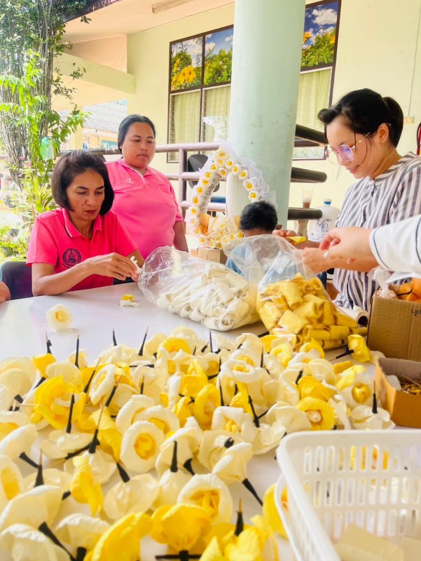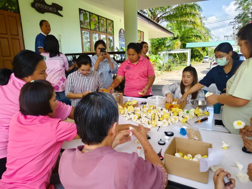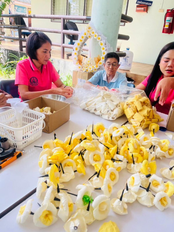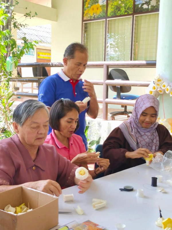 วันศุกร์ที่ 21 กุมภาพันธ์ 2568 ผู้เข้ารับการฝึกอบรมตามโครงการผู้บริบาลผู้สูงอายุในชุมชน เข้าร่วมกิจกรรมอาชีวบำบัดผลิตดอกไม้จันทน์ และพวงหรีดดอกไม้จันทน์ หนึ่งในกิจกรรมอาชีวบำบัดที่สำคัญ