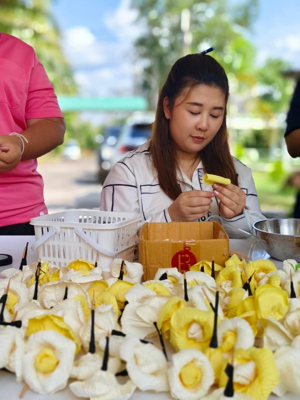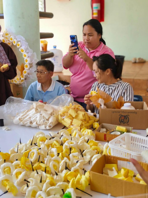 ภาพบรรยากาศการประดิษฐ์ดอกไม้จันทน์และพวงหรีดในครั้งนี้ เป็นอย่างไร เชิญชมค่ะ