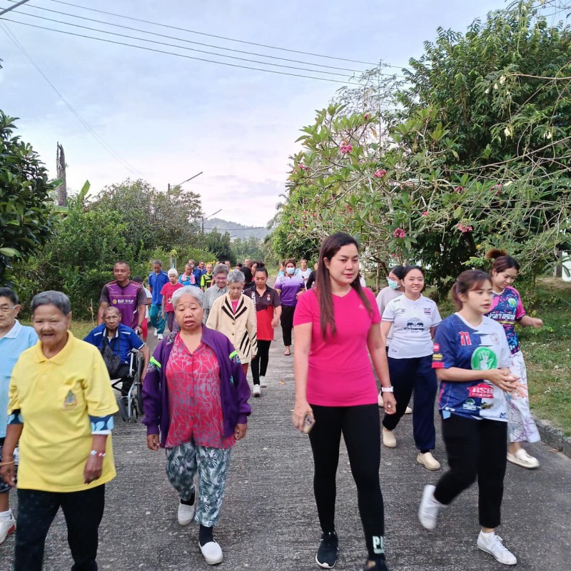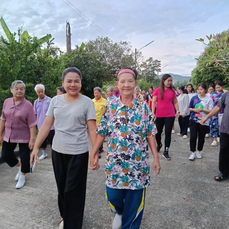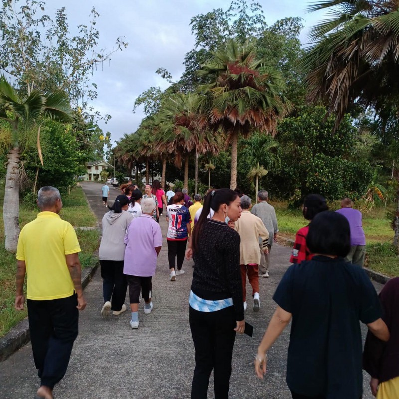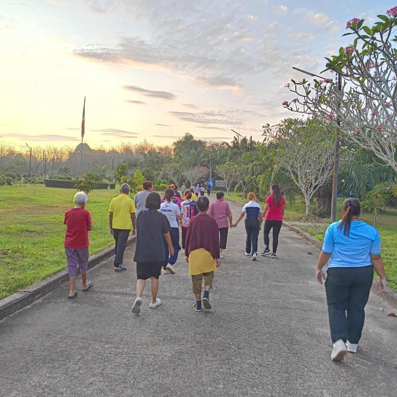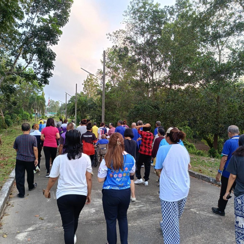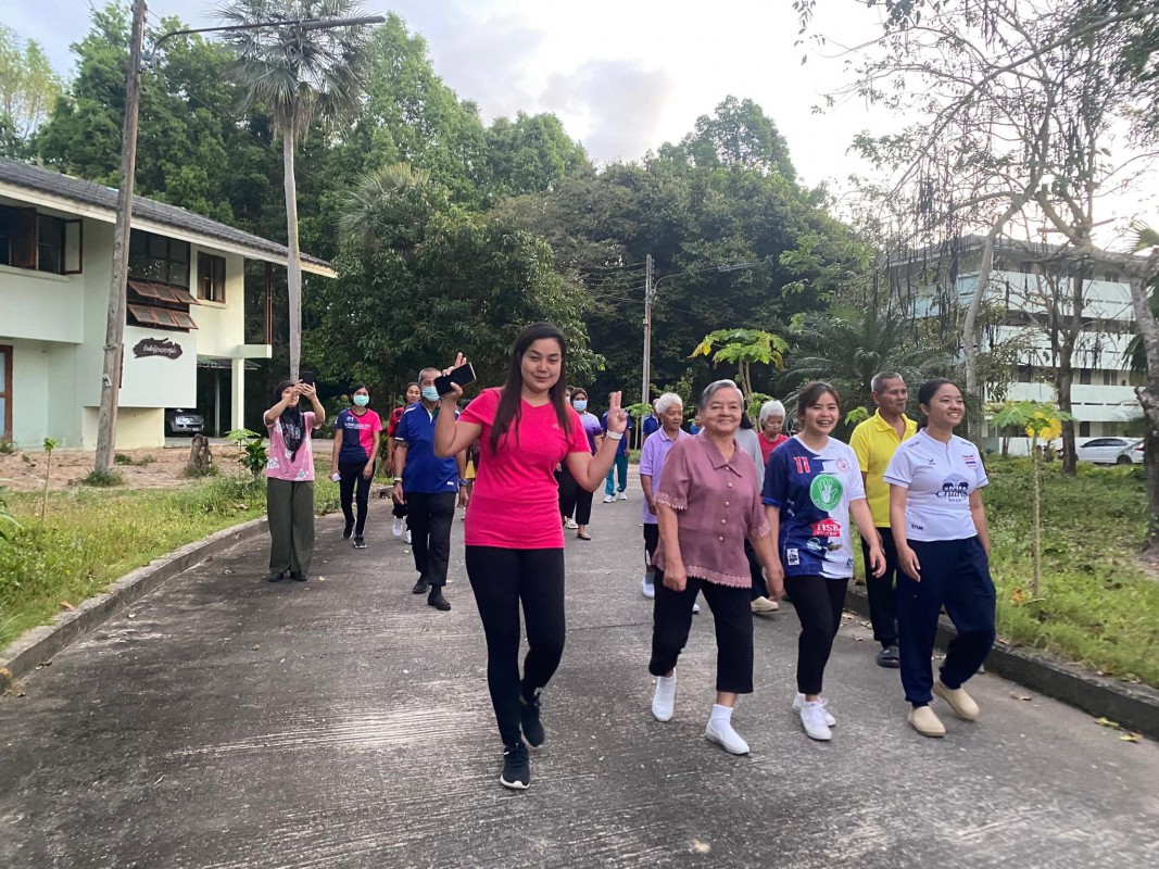 เสาร์สนุก กิจกรรมเดินยามเช้า : การฝึกภาคปฏิบัติของนักศึกษาตามหลักสูตรโครงการผู้บริบาลและคุ้มครองสิทธิผู้สูงอายุในชุมชน ประจำปีงบประมาณ พ.ศ. 2568