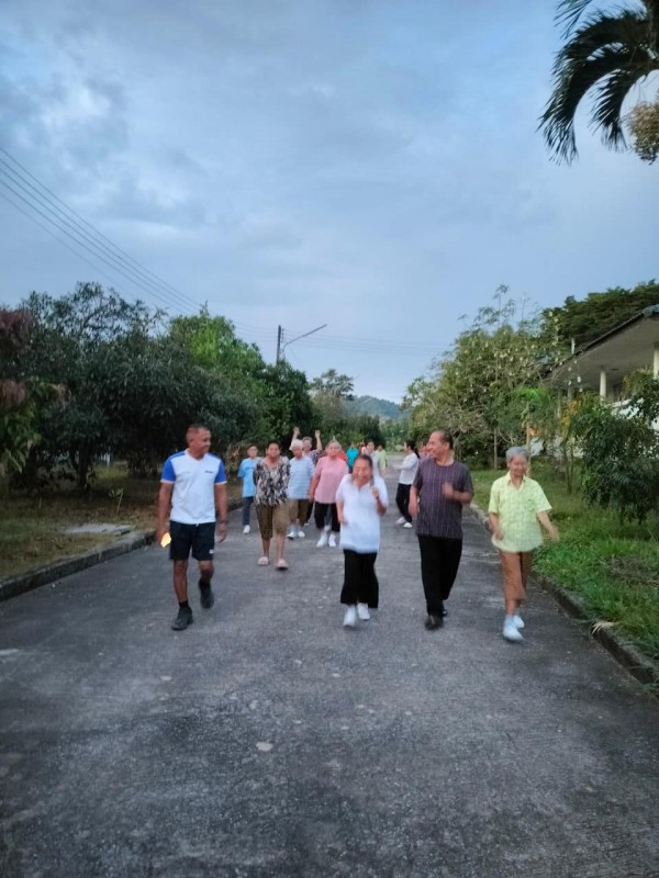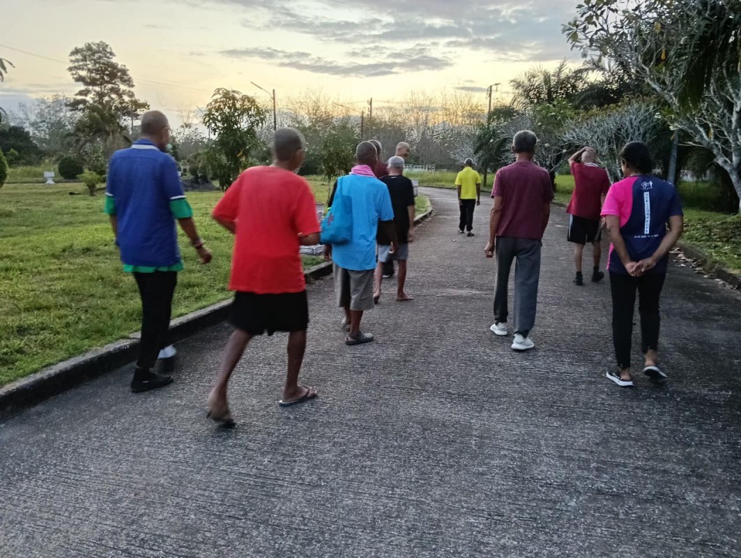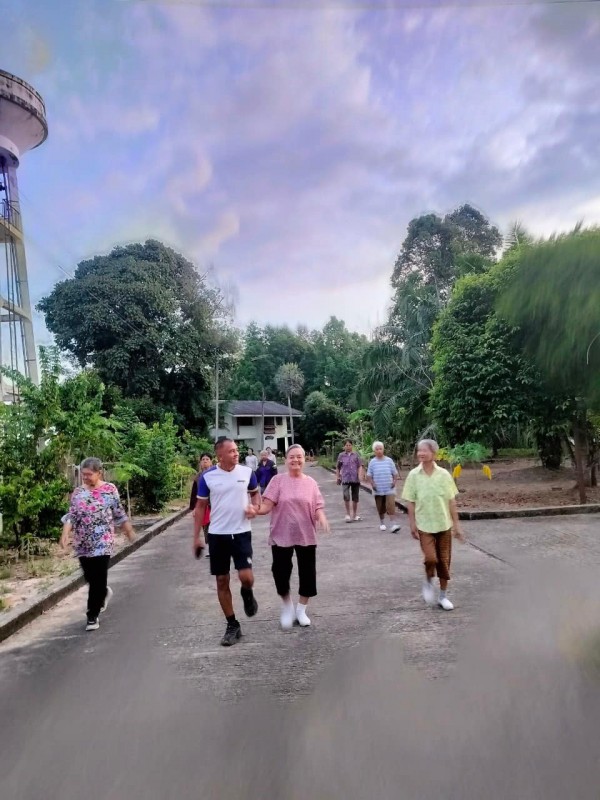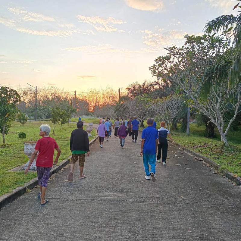 กิจกรรมแรกของวัน ยังคงเป็นการเดินออกกำลังกาย สวัสดี ทักทาย ร่วมกับผู้สูงอายุและเจ้าหน้าที่ เป็นปกติทุกเช้า