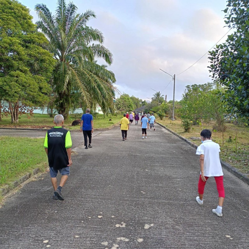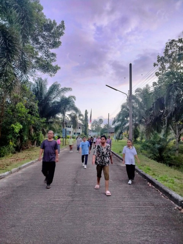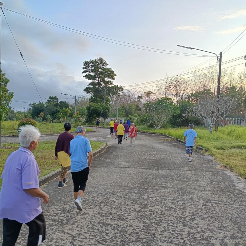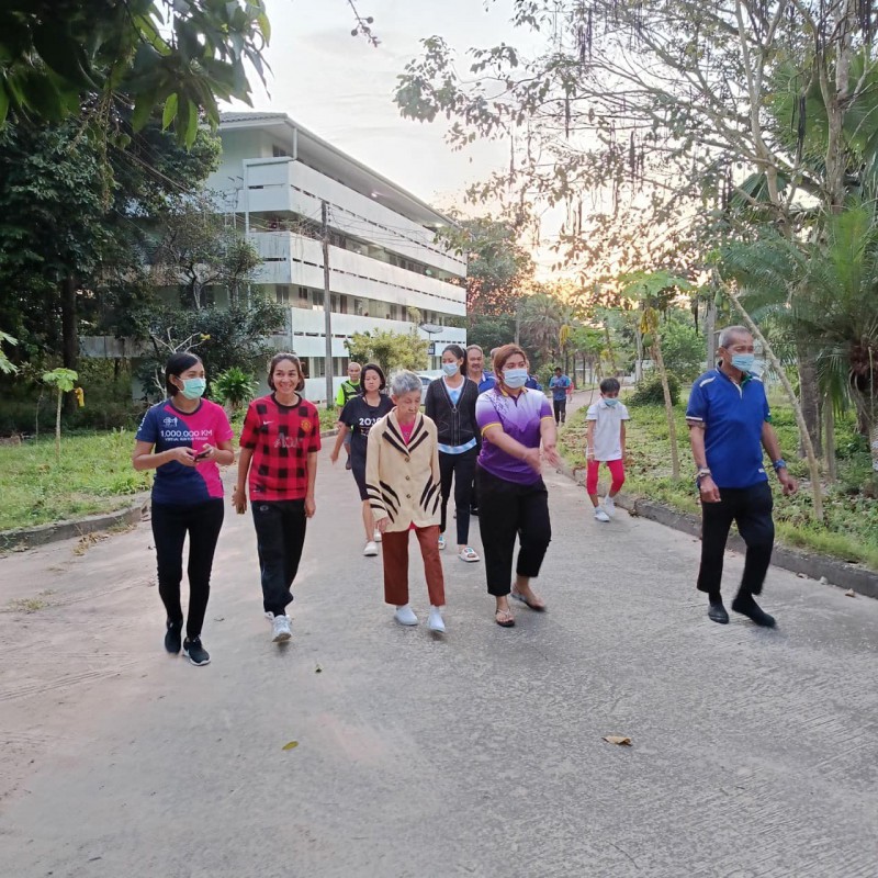 การเดินตามถนนรอบหน่วยงาน มีระยะทางประมาณ 1 กิโลเมตร หรือนับจำนวนได้ประมาณ 1,340 ก้าว ใช้เวลาประมาณรอบละ 15 นาที สำหรับผู้สูงอายุ เราเดินกันเช้าละ 2 รอบ 2 กิโลเมตร ใช้เวลาประมาณ 30 นาที - เป็นห้วงเวลาที่เพียงพอ เหมาะสม และคุ้มค่ามากในแต่ละเช้าสำหรับช่วงวัยของผู้สูงอายุในแต่ละวัน เที่ยวเรียกกันว่าเป็น ”หินก้อนแรก“ ที่วางไว้ที่ก้นโหลของแต่ละคน