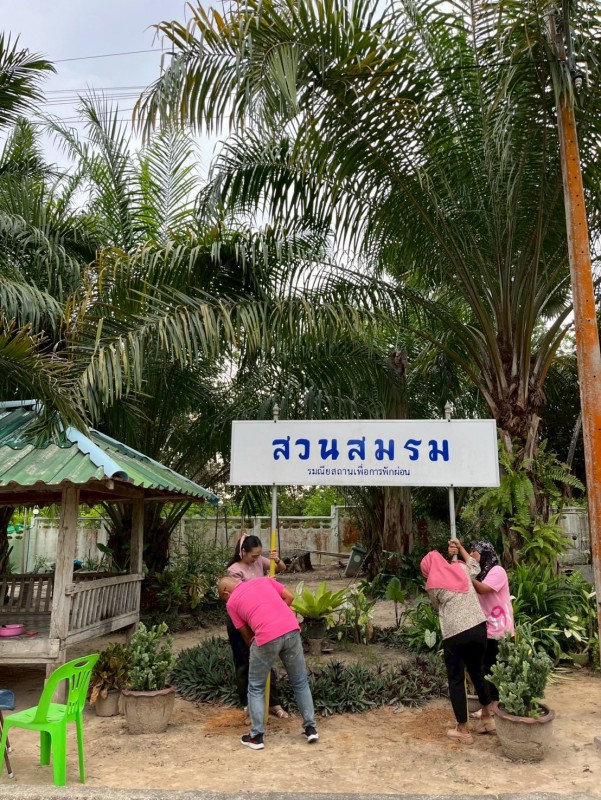 ทั้งนี้ ได้จัดทำป้ายชื่อ สวนสมรม รมยณียสถานเพื่อการพักผ่อน