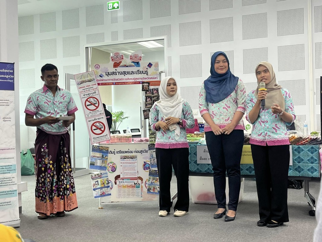 ในการนี้ ศพส. จังหวัดสงขลา ได้นำเสนอกิจกรรม เรื่อง “การงด ลด เลิก การสูบบุหรี่” ของผู้สูงอายุ เจ้าหน้าที่ และผู้มาติดต่อราชการด้วย