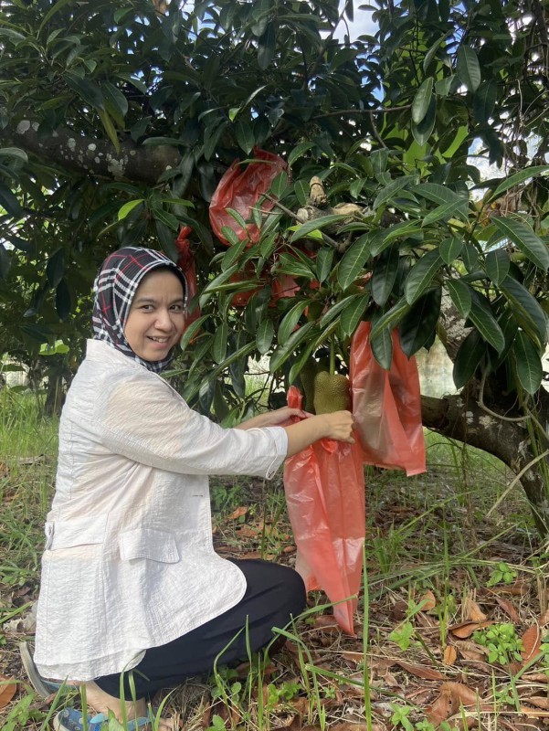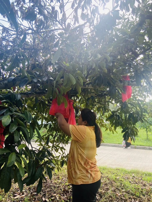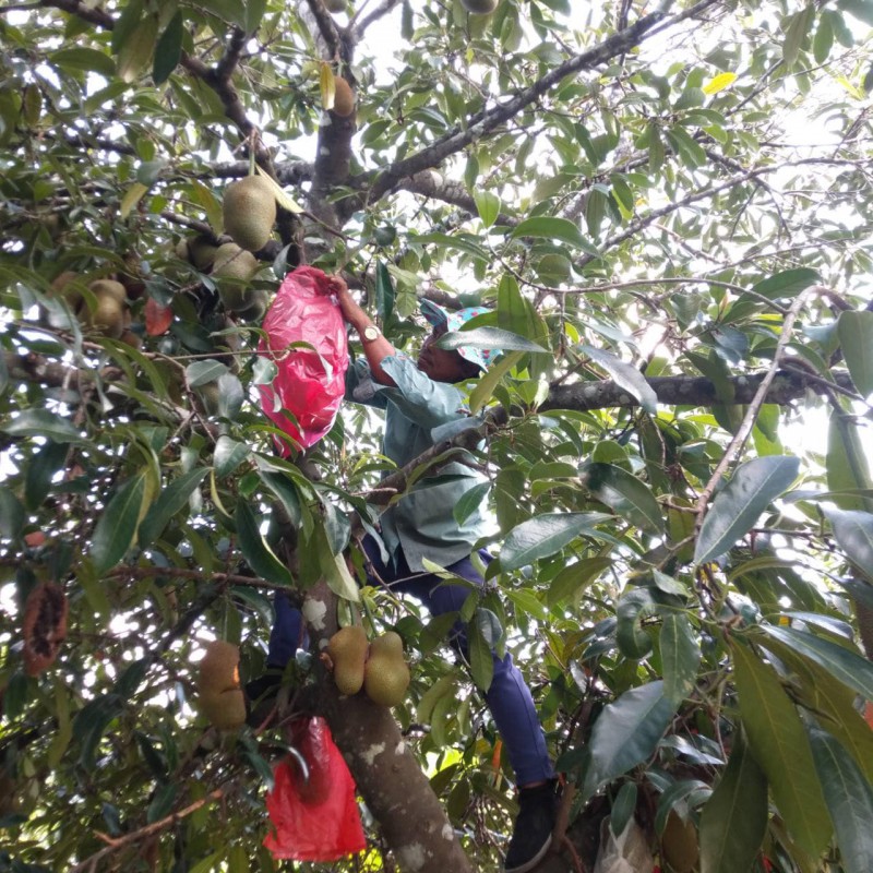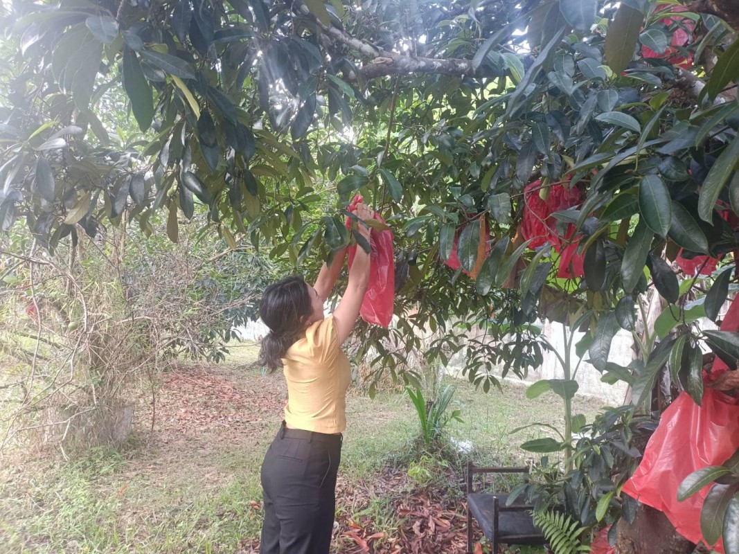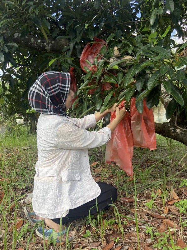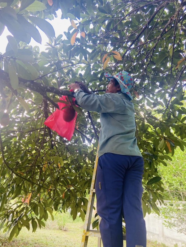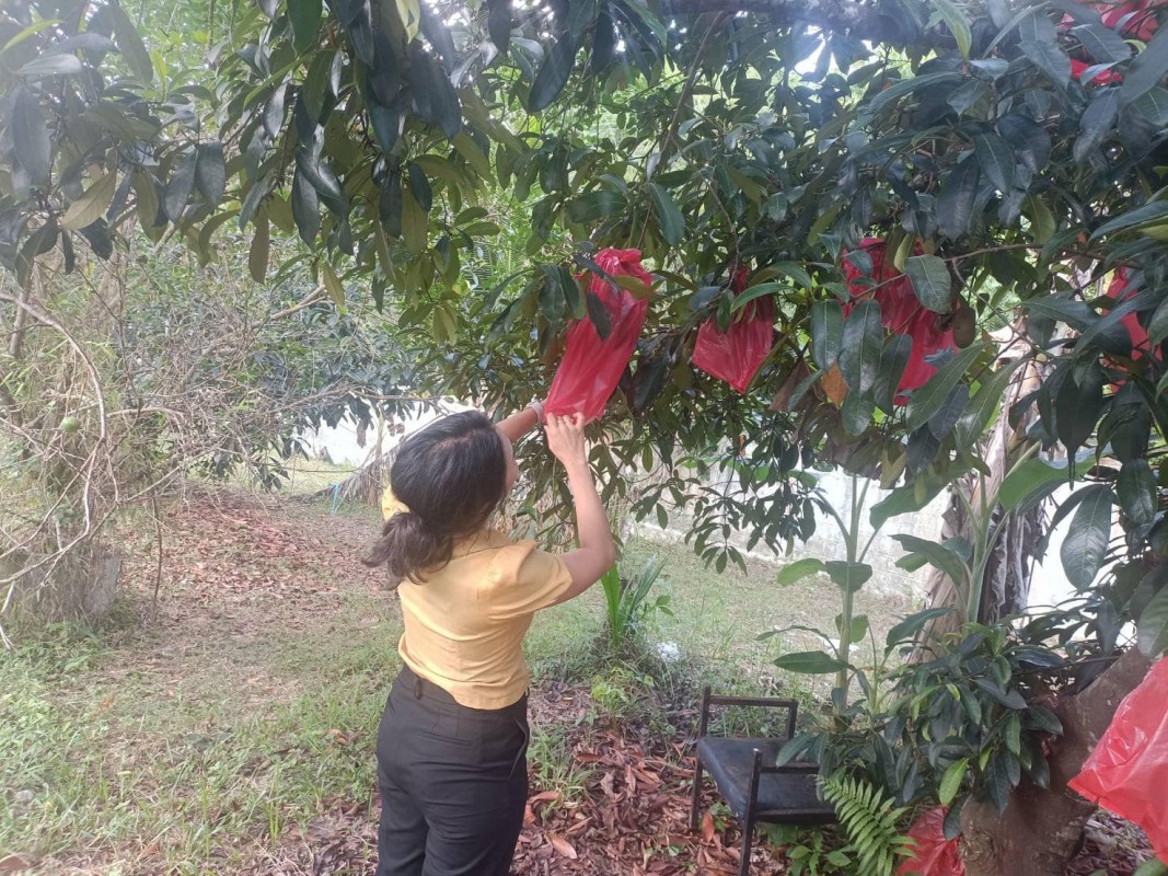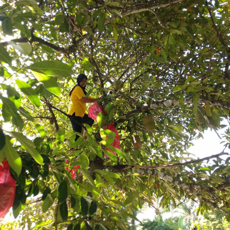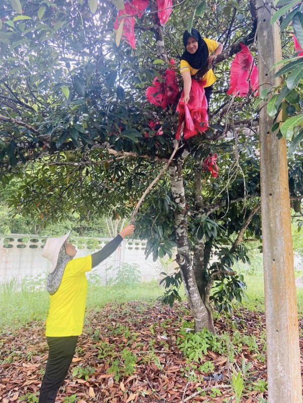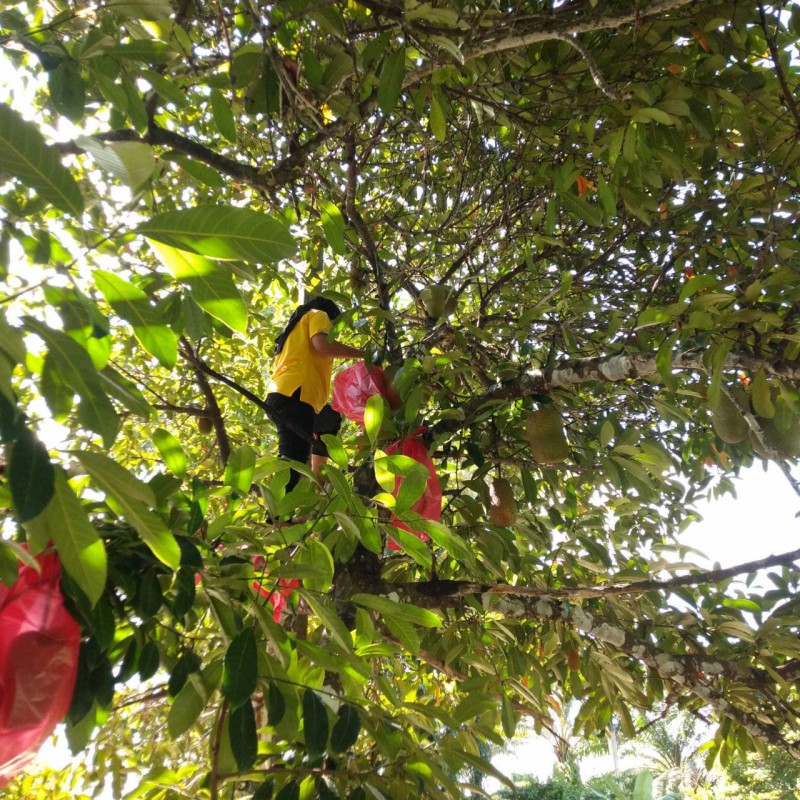 เพื่อให้ได้ผลสวยงาม วันนี้ พี่น้องชาวสวน (เลิกงานก่อนกลับบ้าน) จึงจำเป็นต้องช่วยกันห่อ ป้องกันแมลง กระรอก - ห่อด้วยกระดาษหนังสือพิมพ์บ้าง ถุงพลาสติกบ้าง กระทั่งใช้ใบสิเหรงสานเป็นตะกร้อห่อลูกจำปาดะ ดังที่ทำกันเมื่อปีที่ผ่านมา