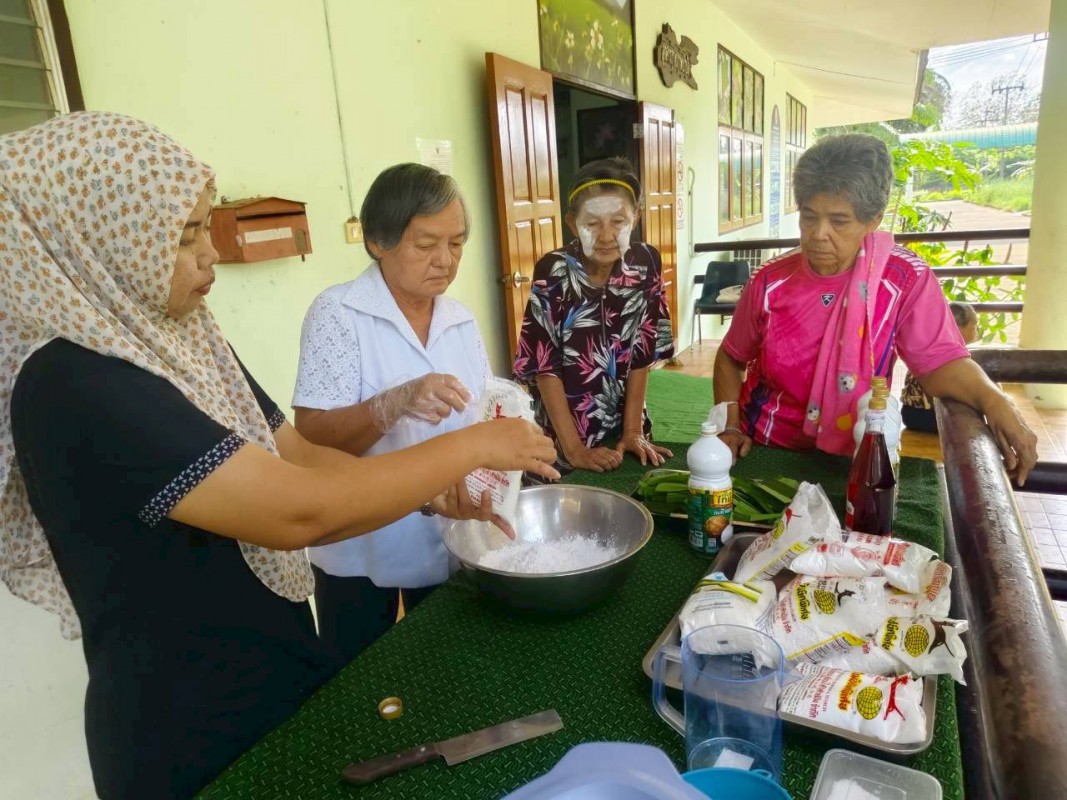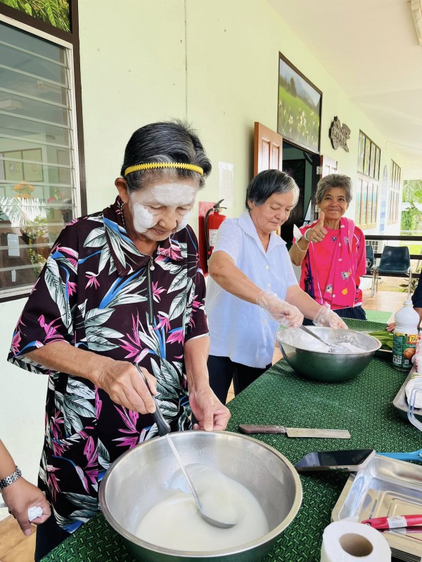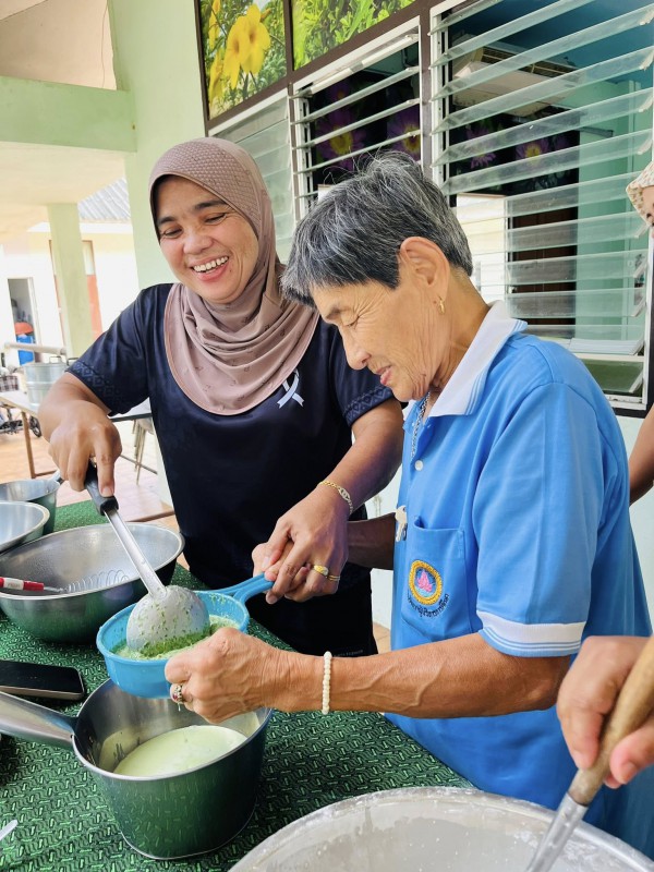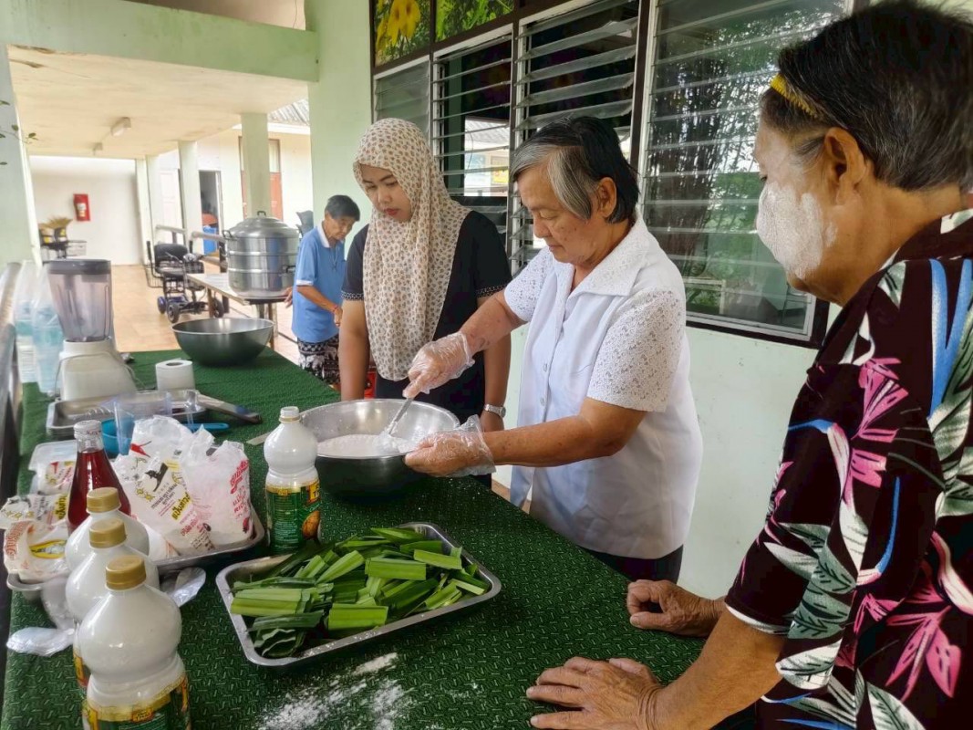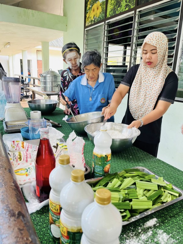 วันพุธที่ 3 ธันวาคม 2568 ศพส.จังหวัดสงขลา กำหนดตารางกิจกรรมประจำเดือน (M : Monthly) ให้มีกิจกรรมทำขนมรสมือยาย เดือนละสองครั้ง ประจำวันพุธที่ 2 และ 4 ของเดือน เป็นเมนูอาหารประจำประเภทขนม วัสดุหาง่าย โดยมุ่งส่งเสริมการมีส่วนร่วม การใช้ประสบการณ์ และการเรียนรู้ร่วมกัน โดยเจ้าหน้าที่อยู่ในฐานะผู้อำนวยความสะดวก เป็นผู้ช่วยเชฟสูงวัย โดยกิจกรรมวันนี้ เป็นขนมชั้น วัตถุดิบจากพื้น