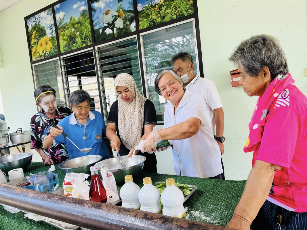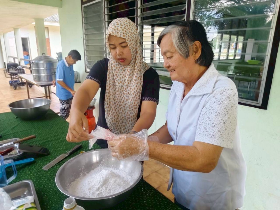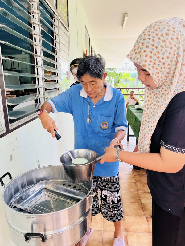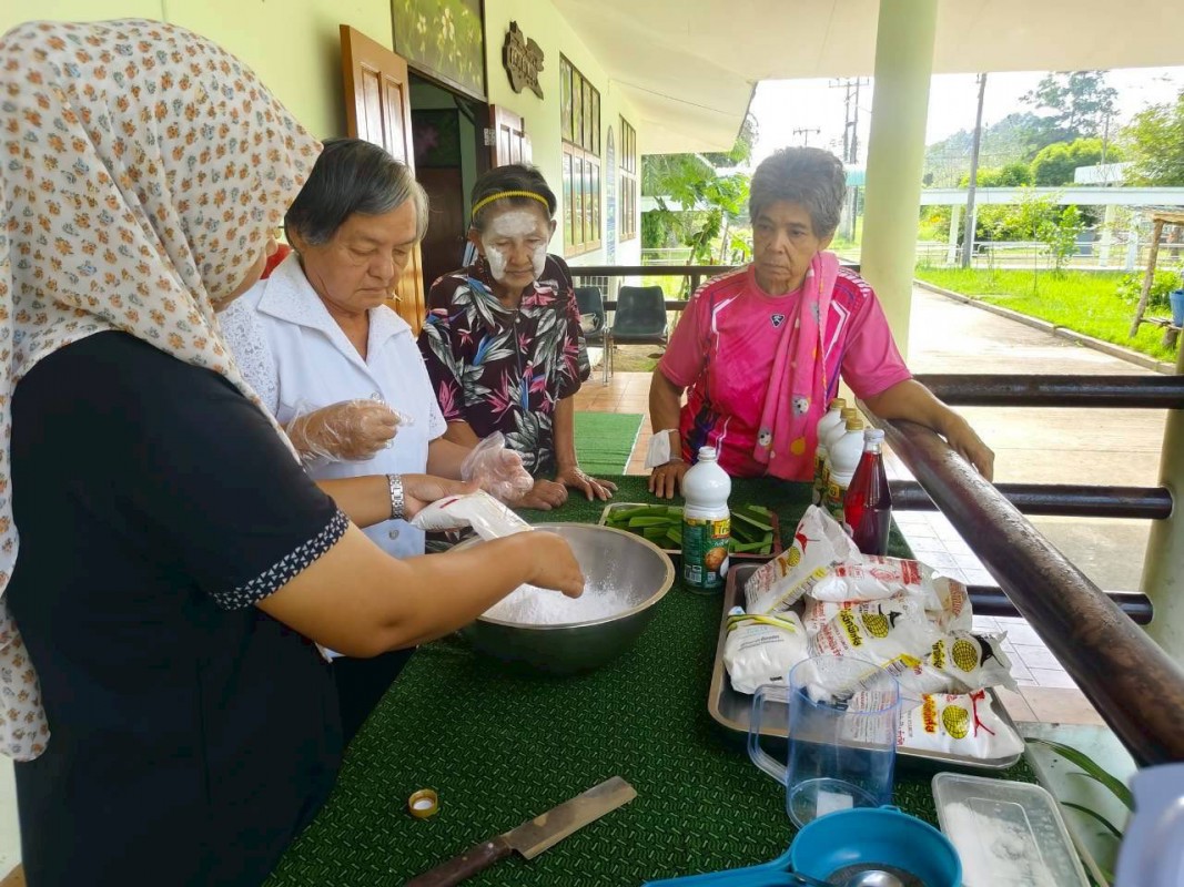 วันพุธที่ 3 ธันวาคม 2568 ศพส.จังหวัดสงขลา กำหนดตารางกิจกรรมประจำเดือน (M : Monthly) ให้มีกิจกรรมทำขนมรสมือยาย เดือนละสองครั้ง ประจำวันพุธที่ 2 และ 4 ของเดือน เป็นเมนูอาหารประจำประเภทขนม วัสดุหาง่าย โดยมุ่งส่งเสริมการมีส่วนร่วม การใช้ประสบการณ์ และการเรียนรู้ร่วมกัน โดยเจ้าหน้าที่อยู่ในฐานะผู้อำนวยความสะดวก เป็นผู้ช่วยเชฟสูงวัย โดยกิจกรรมวันนี้ เป็นขนมชั้น วัตถุดิบจากพื้น