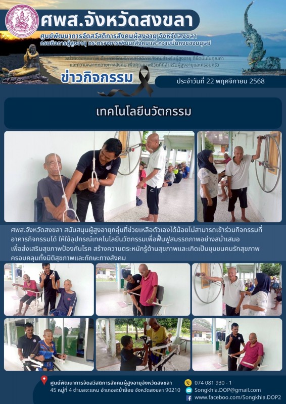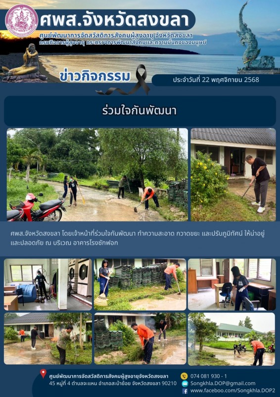 ศพส.จังหวัดสงขลา ขอรายงานกิจกรรม ประจำวันที่ 22 พฤศจิกายน 2568 จำนวน 4 กิจกรรม ดังนี้