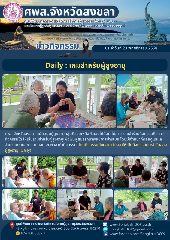 ศพส.จังหวัดสงขลา ขอรายงานกิจกรรม ประจำวันที่ 23 พฤศจิกายน 2568 จำนวน 4 กิจกรรม ดังนี้