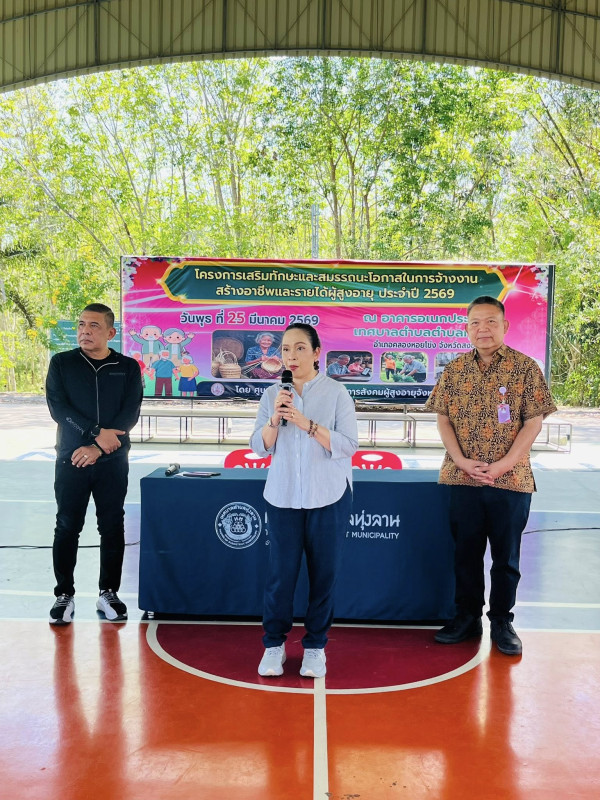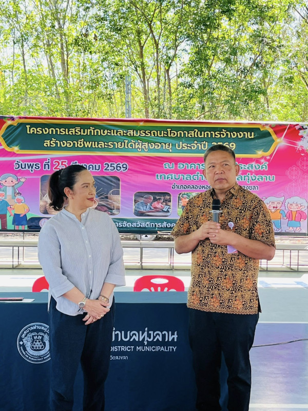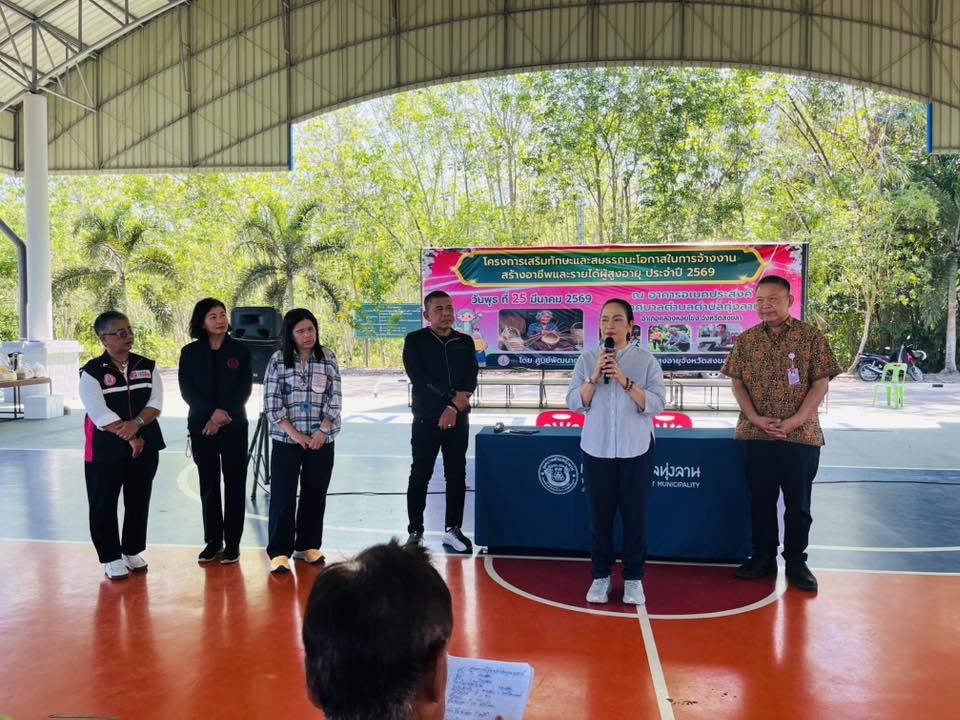 วันพุธที่ 25 มีนาคม 2569 ศพส.จังหวัดสงขลา ดำเนินโครงการเสริมทักษะและสมรรถนะโอกาสในการจ้างงานสร้างอาชีพและรายได้ผู้สูงอายุ ประจำปี 2569 โดยมีนางจิตติมา กรีอารี รองอธิบดีกรมพัฒนาสังคมและสวัสดิการ เป็นประธานเปิดโครงการฯ