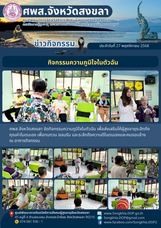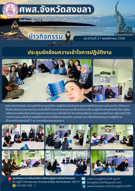 ศพส.จังหวัดสงขลา ขอรายงานกิจกรรม ประจำวันที่ 27 พฤศจิกายน 2568 จำนวน 5 กิจกรรม ดังนี้