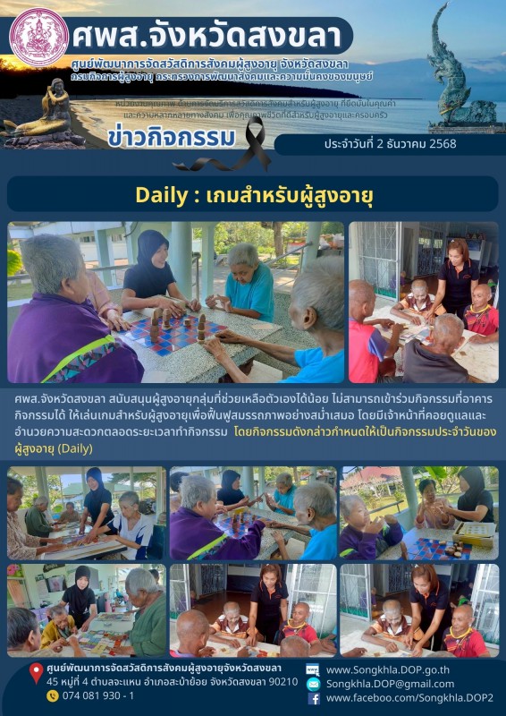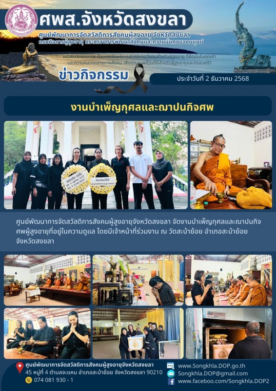 ศพส.จังหวัดสงขลา ขอรายงานกิจกรรม ประจำวันที่ 2 ธันวาคม 2568 จำนวน 7 กิจกรรม ดังนี้