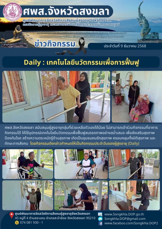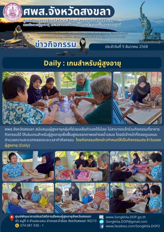 ศพส.จังหวัดสงขลา ขอรายงานกิจกรรม ประจำวันที่ 9 ธันวาคม 2568 จำนวน 6 กิจกรรม ดังนี้