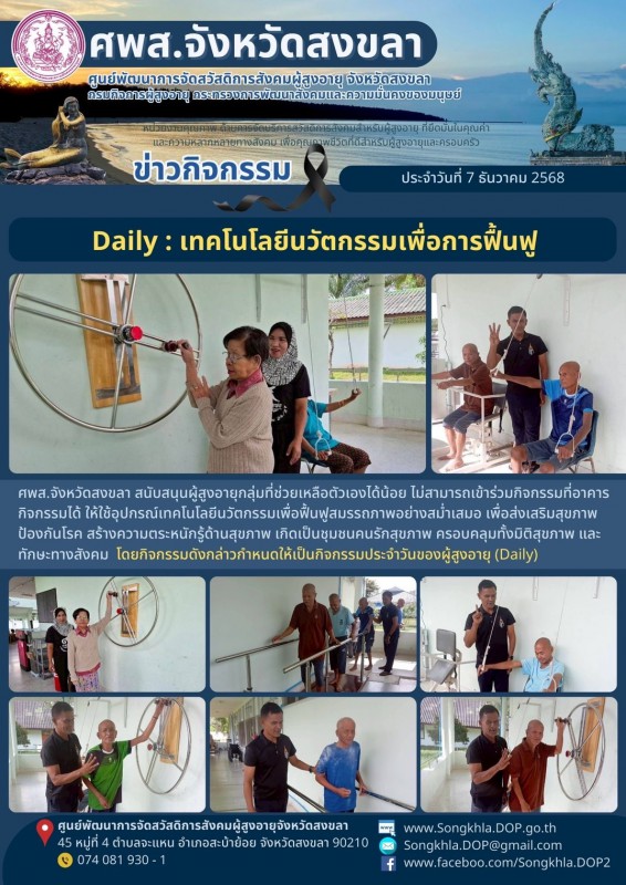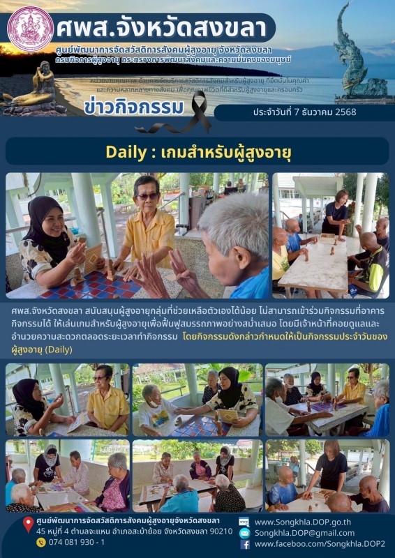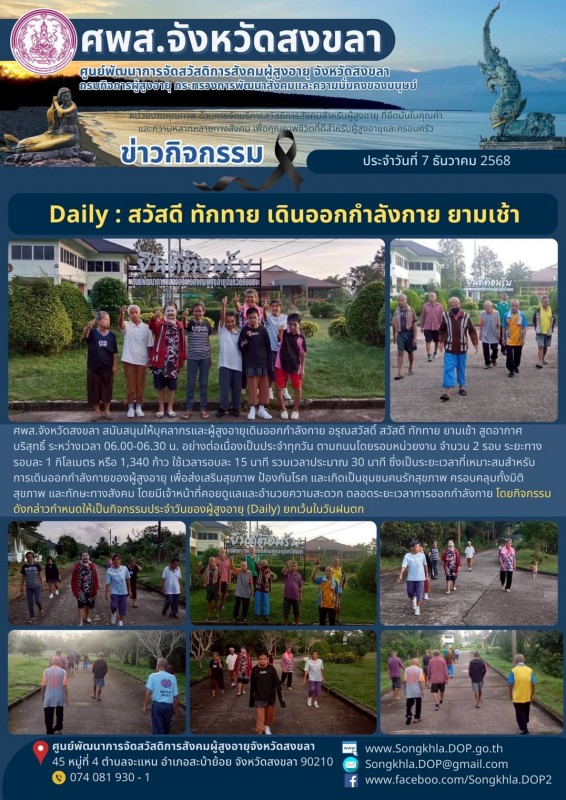 ศพส.จังหวัดสงขลา ขอรายงานกิจกรรม ประจำวันที่ 7 ธันวาคม 2568 จำนวน 5 กิจกรรม ดังนี้