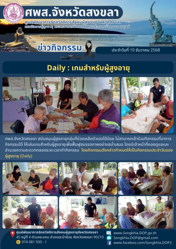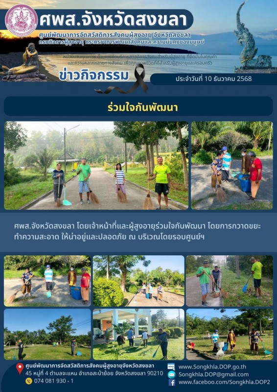 ศพส.จังหวัดสงขลา ขอรายงานกิจกรรม ประจำวันที่ 10 ธันวาคม 2568 จำนวน 6 กิจกรรม ดังนี้