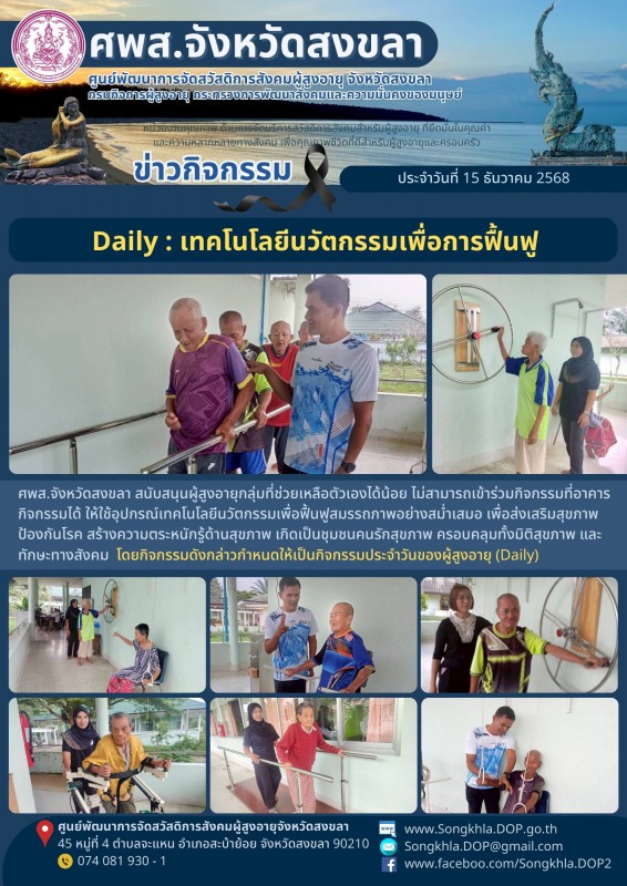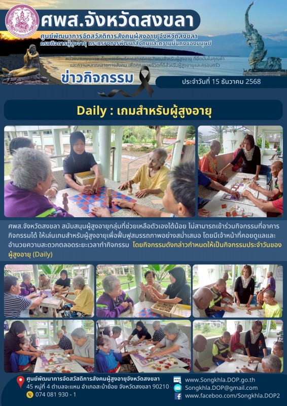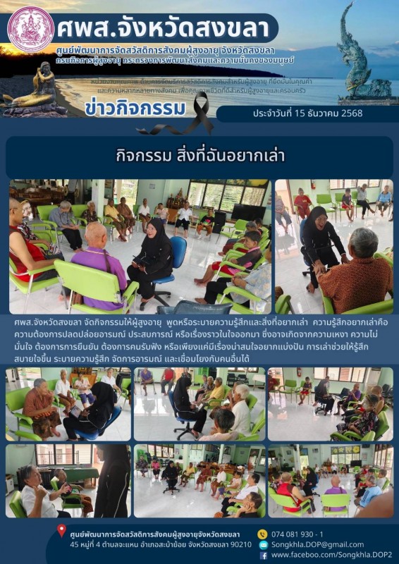 ศพส.จังหวัดสงขลา ขอรายงานกิจกรรม ประจำวันที่ 15 ธันวาคม 2568 จำนวน 6 กิจกรรม ดังนี้