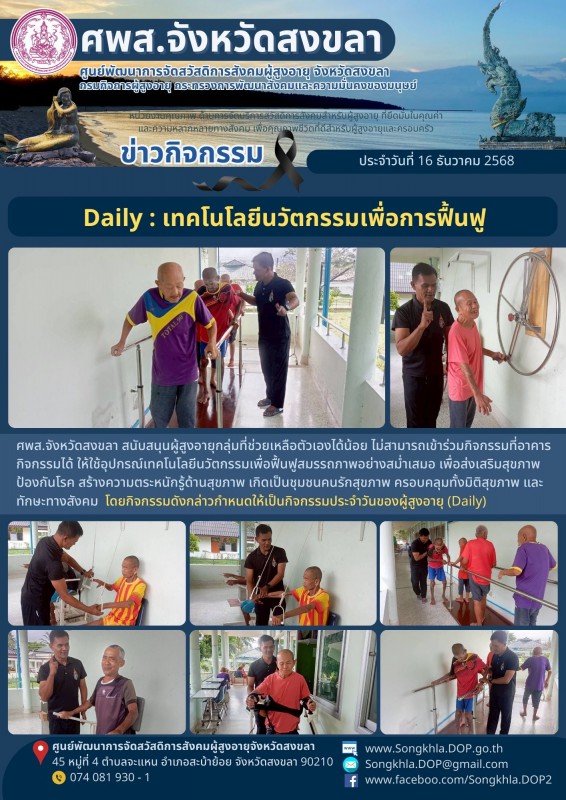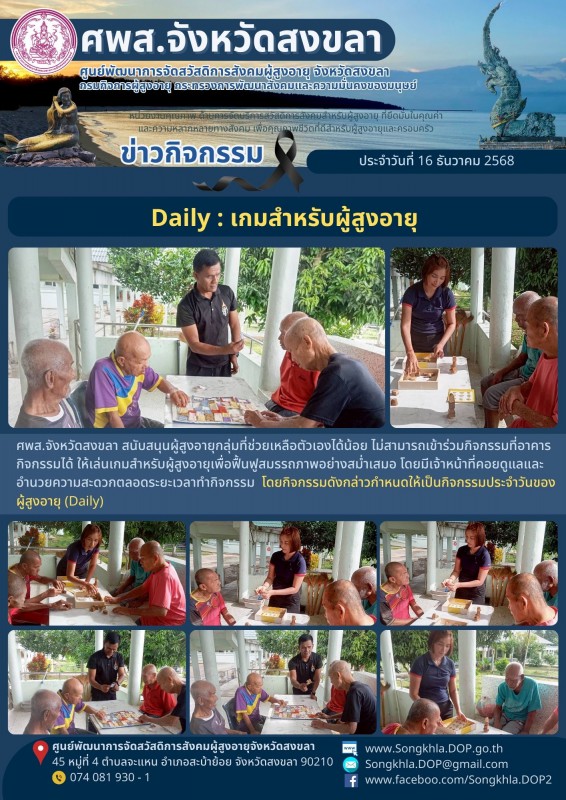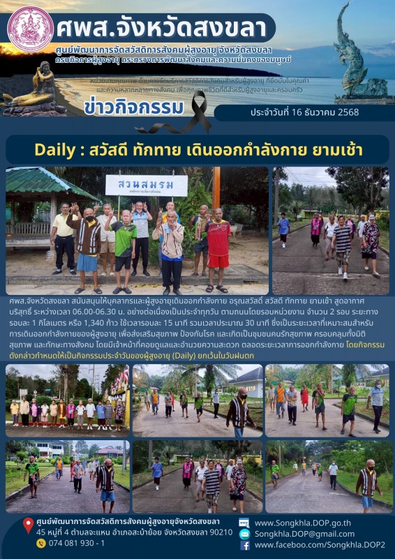 ศพส.จังหวัดสงขลา ขอรายงานกิจกรรม ประจำวันที่ 16 ธันวาคม 2568 จำนวน 5 กิจกรรม ดังนี้