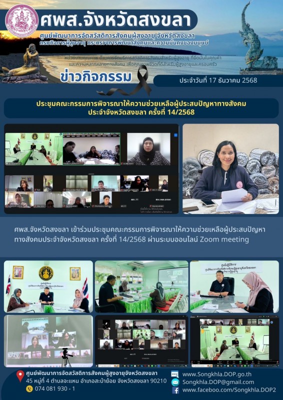2.ประชุมคณะกรรมการพิจารณาให้ความช่วยเหลือผู้ประสบปัญหาทางสังคมประจำจังหวัดสงขลา ครั้งที่ 14/2568
