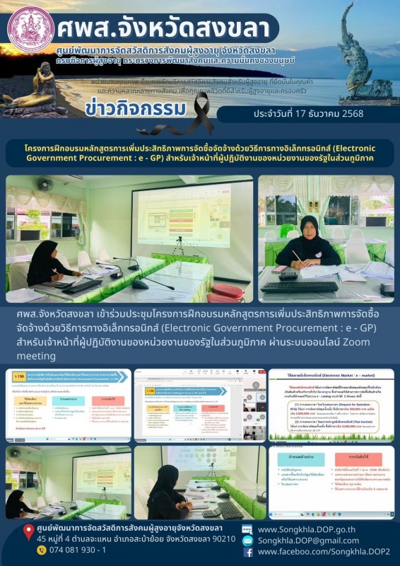 ศพส.จังหวัดสงขลา ขอรายงานกิจกรรม ประจำวันที่ 17 ธันวาคม 2568 จำนวน 8 กิจกรรม ดังนี้