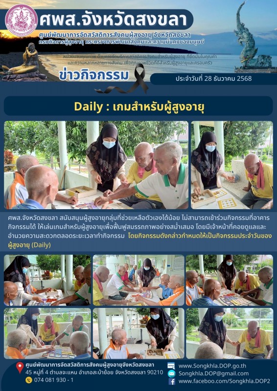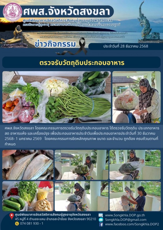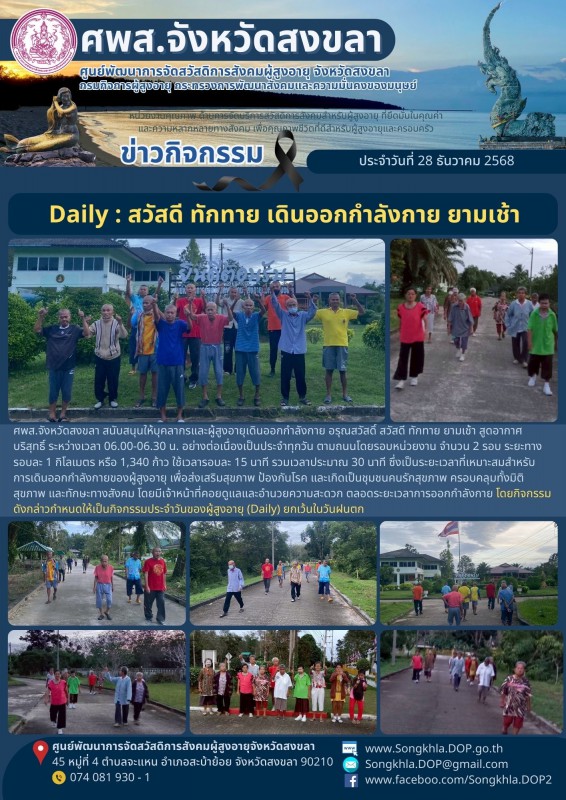 ศพส.จังหวัดสงขลา ขอรายงานกิจกรรม ประจำวันที่ 28 ธันวาคม 2568 จำนวน 5 กิจกรรมดังนี้