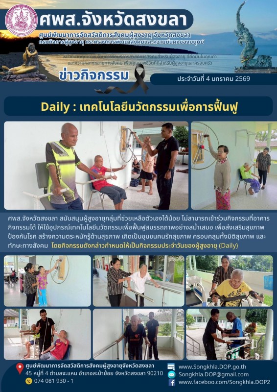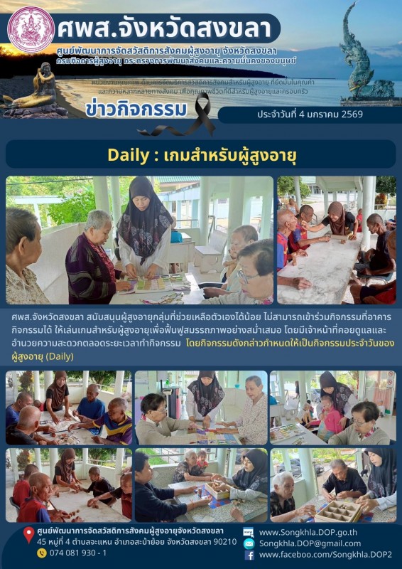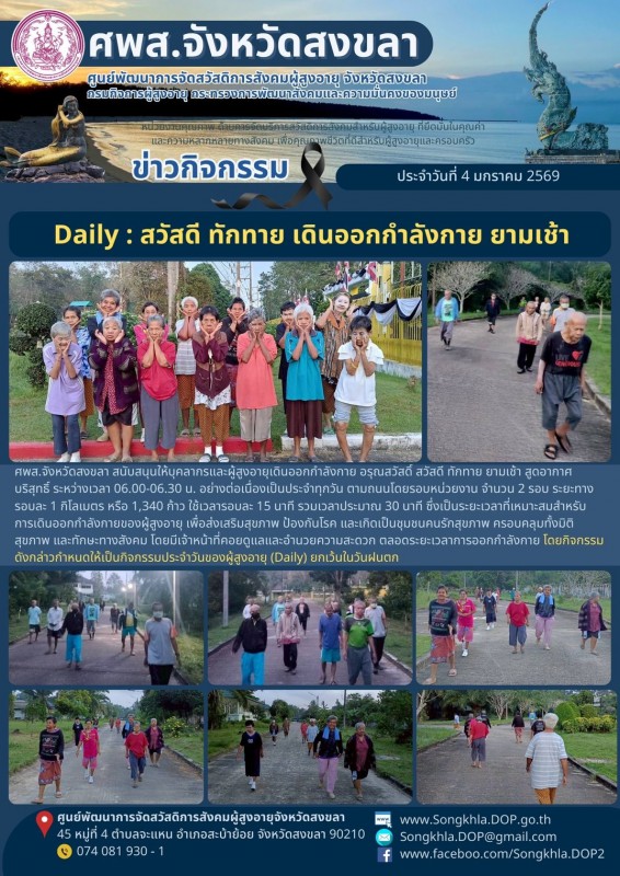 ศพส.จังหวัดสงขลา ขอรายงานกิจกรรม ประจำวันที่ 4 มกราคม 2569 จำนวน 4 กิจกรรมดังนี้