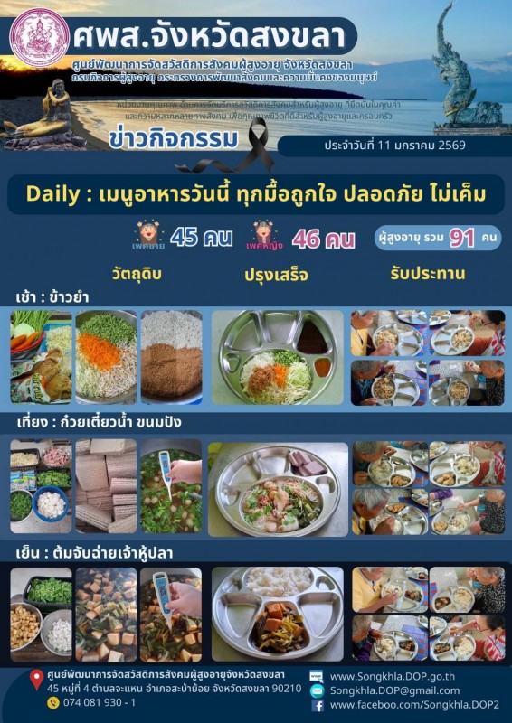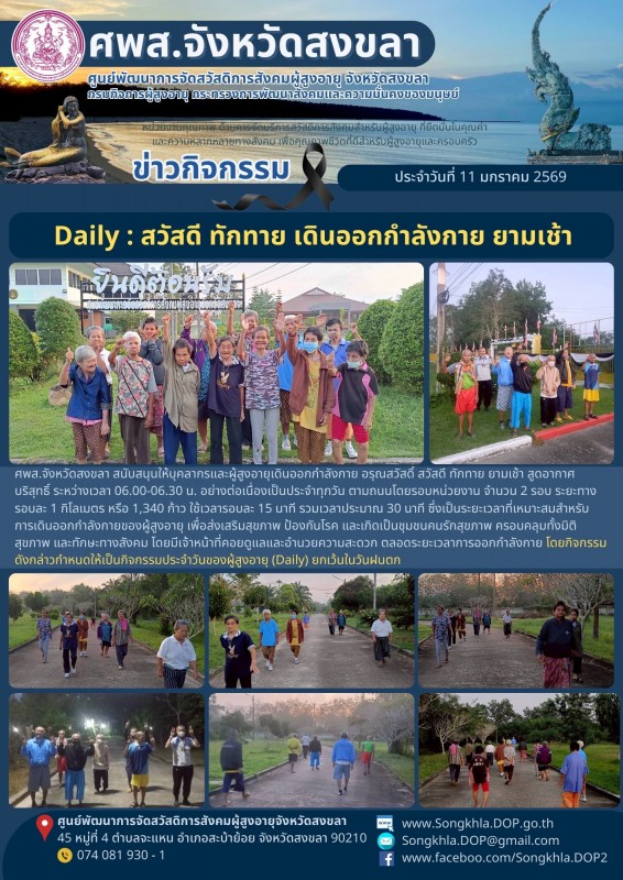 ศพส.จังหวัดสงขลา ขอรายงานกิจกรรม ประจำวันที่ 11 มกราคม 2569 จำนวน 2 กิจกรรม ดังนี้