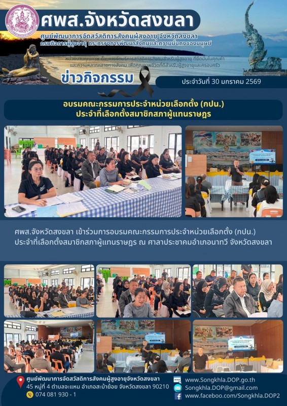 ศพส.จังหวัดสงขลา ขอรายงานกิจกรรม ประจำวันที่ 30 มกราคม 2569 จำนวน 8 กิจกรรม ดังนี้
