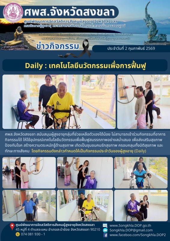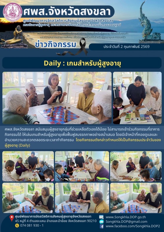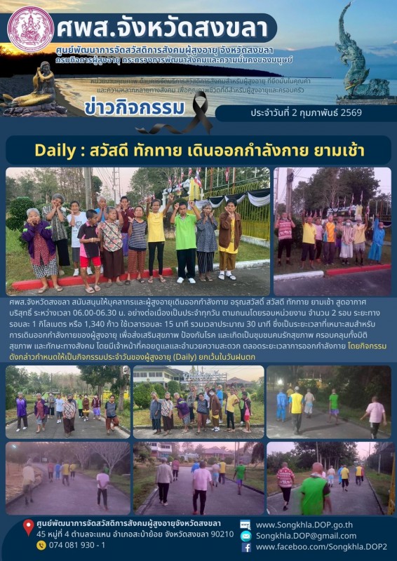 ศพส.จังหวัดสงขลา ขอรายงานกิจกรรม ประจำวันที่ 2 กุมภาพันธ์ 2569 จำนวน 6 กิจกรรม ดังนี้