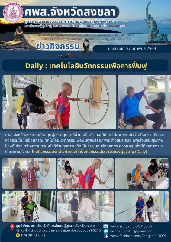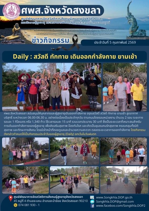 ศพส.จังหวัดสงขลา ขอรายงานกิจกรรม ประจำวันที่ 5 กุมภาพันธ์ 2569 จำนวน 6 กิจกรรม ดังนี้