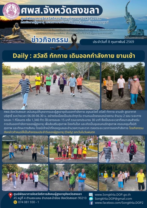 ศพส.จังหวัดสงขลา ขอรายงานกิจกรรม ประจำวันที่ 8 กุมภาพันธ์ 2569 จำนวน 3 กิจกรรม ดังนี้