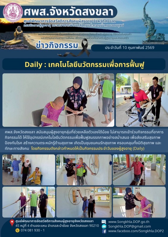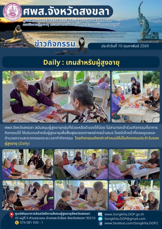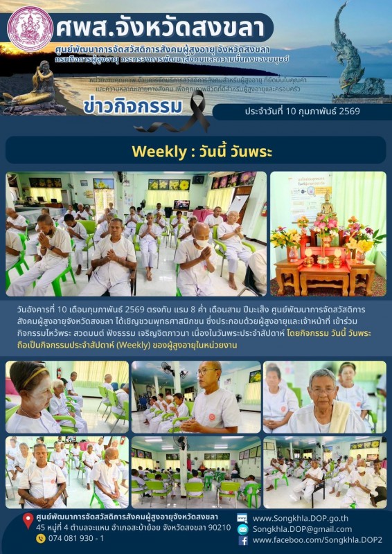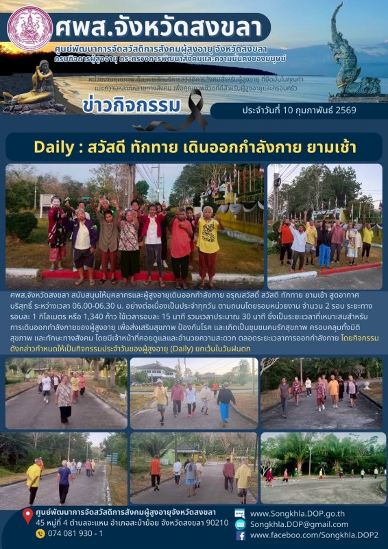 ศพส.จังหวัดสงขลา ขอรายงานกิจกรรม ประจำวันที่ 10 กุมภาพันธ์ 2569 จำนวน 6 กิจกรรม ดังนี้
