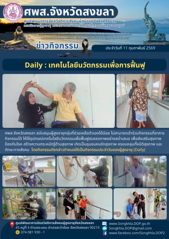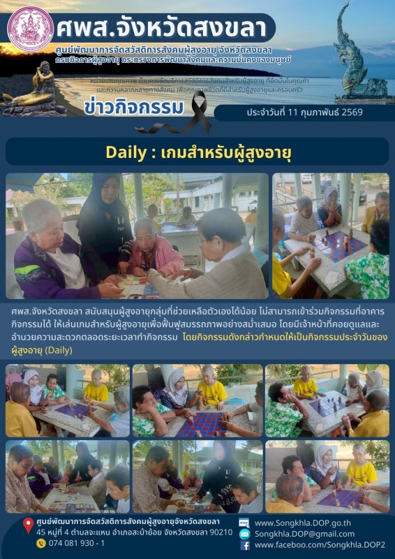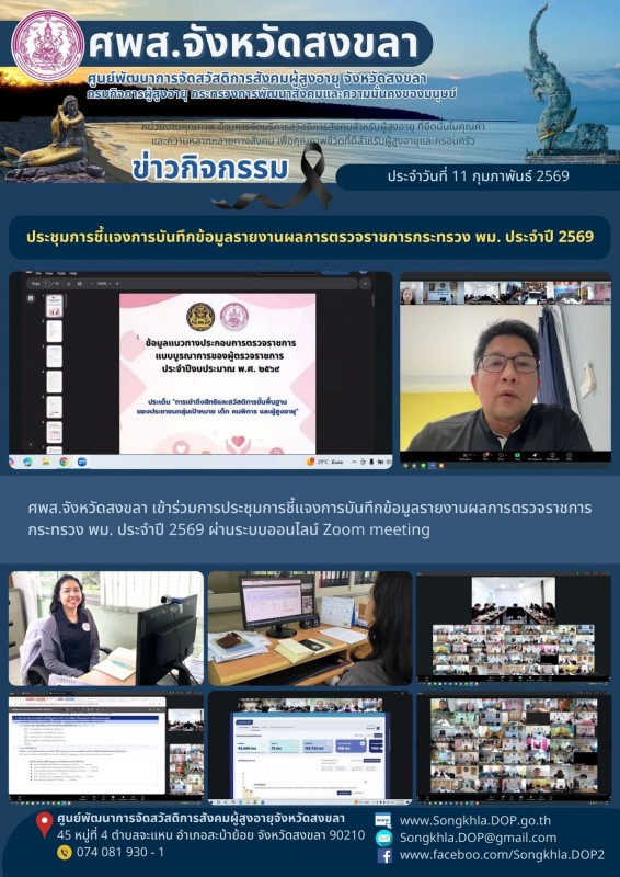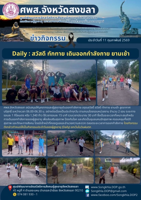 ศพส.จังหวัดสงขลา ขอรายงานกิจกรรม ประจำวันที่ 11 กุมภาพันธ์ 2569 จำนวน 5 กิจกรรม ดังนี้