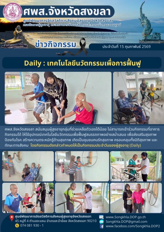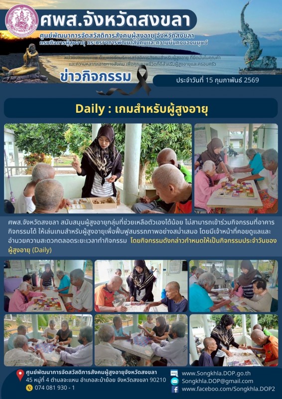ศพส.จังหวัดสงขลา ขอรายงานกิจกรรม ประจำวันที่ 15 กุมภาพันธ์ 2569 จำนวน 3 กิจกรรม ดังนี้
