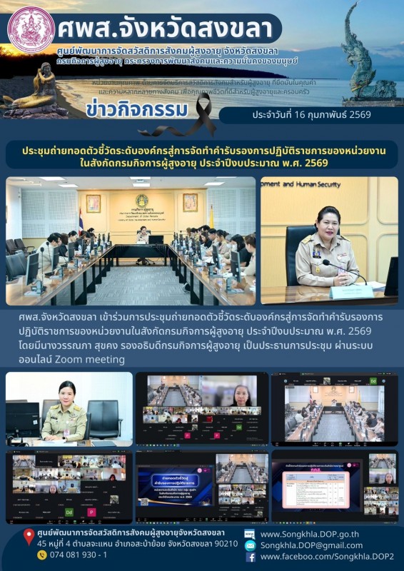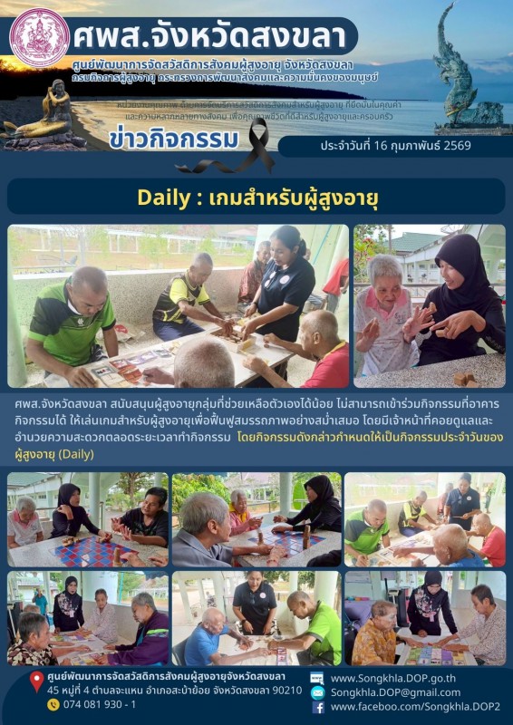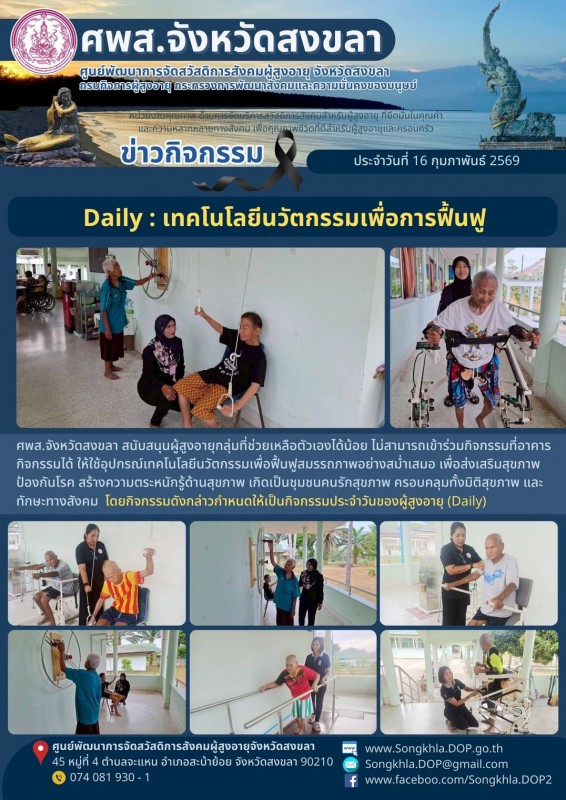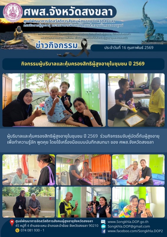 ศพส.จังหวัดสงขลา ขอรายงานกิจกรรม ประจำวันที่ 16 กุมภาพันธ์ 2569 จำนวน 6 กิจกรรม ดังนี้
