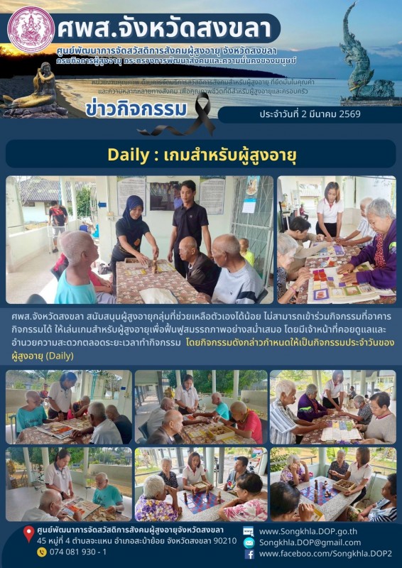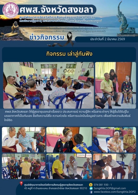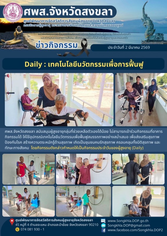 ศพส.จังหวัดสงขลา ขอรายงานกิจกรรม ประจำวันที่ 2 มีนาคม 2569 จำนวน 5 กิจกรรม ดังนี้