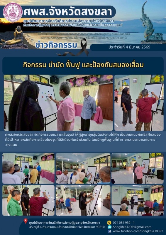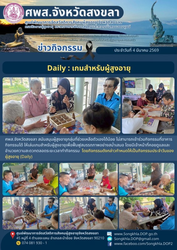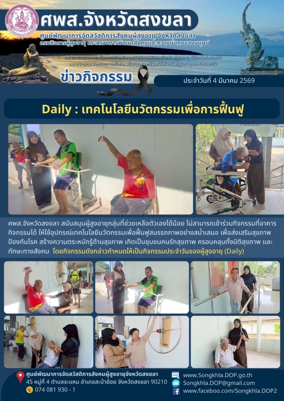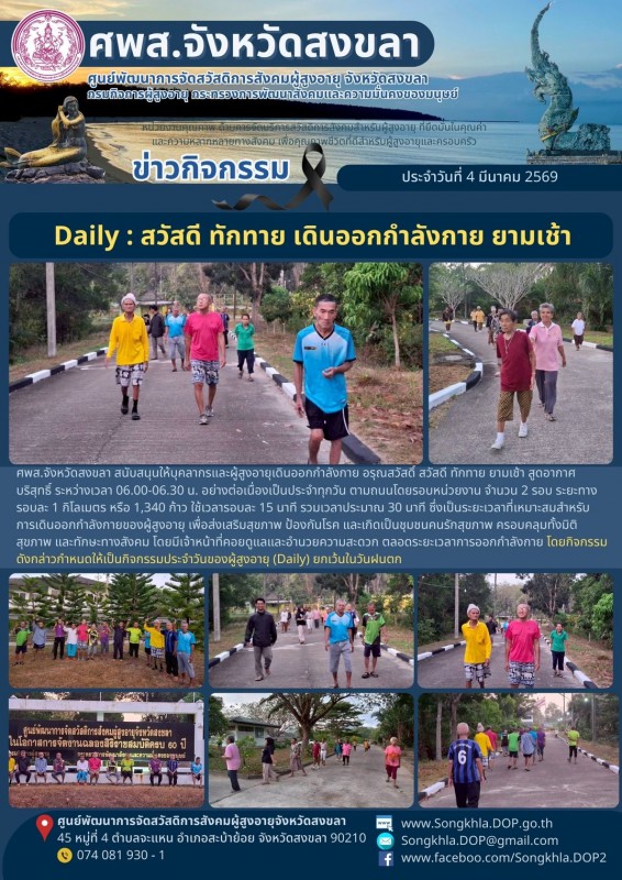 ศพส.จังหวัดสงขลา ขอรายงานกิจกรรม ประจำวันที่ 4 มีนาคม 2569 จำนวน 5 กิจกรรม ดังนี้
