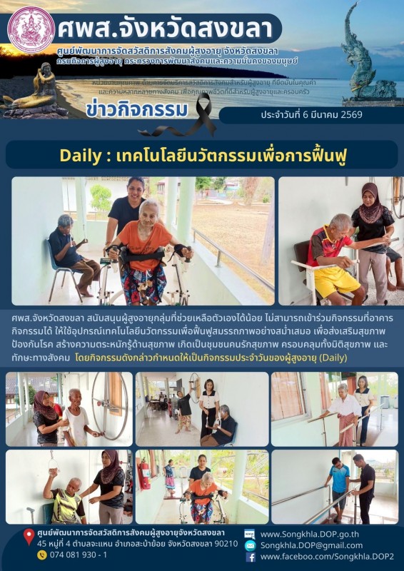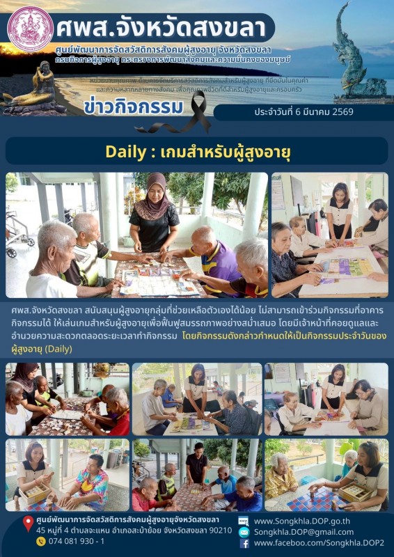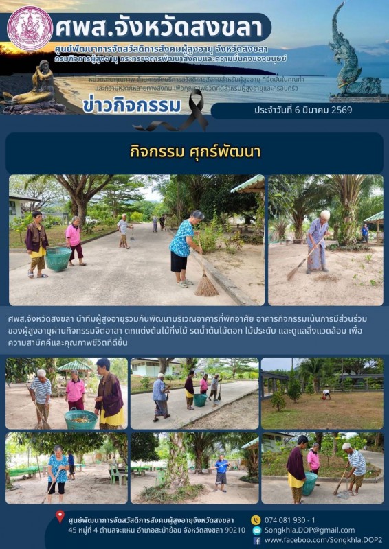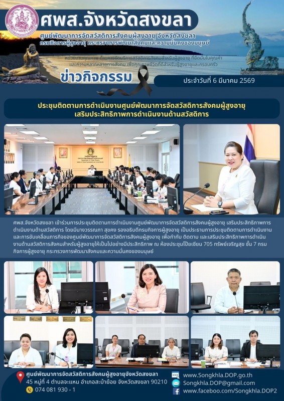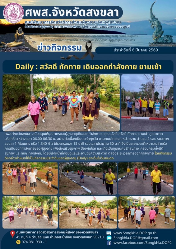 ศพส.จังหวัดสงขลา ขอรายงานกิจกรรม ประจำวันที่ 6 มีนาคม 2569 จำนวน 6 กิจกรรม ดังนี้