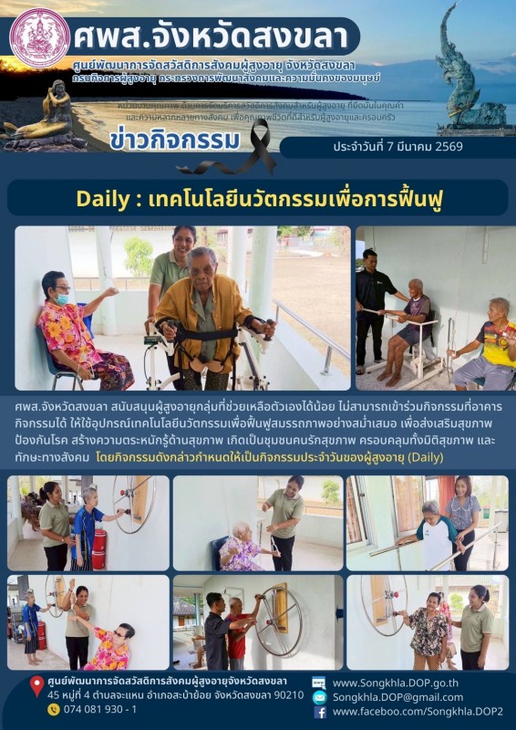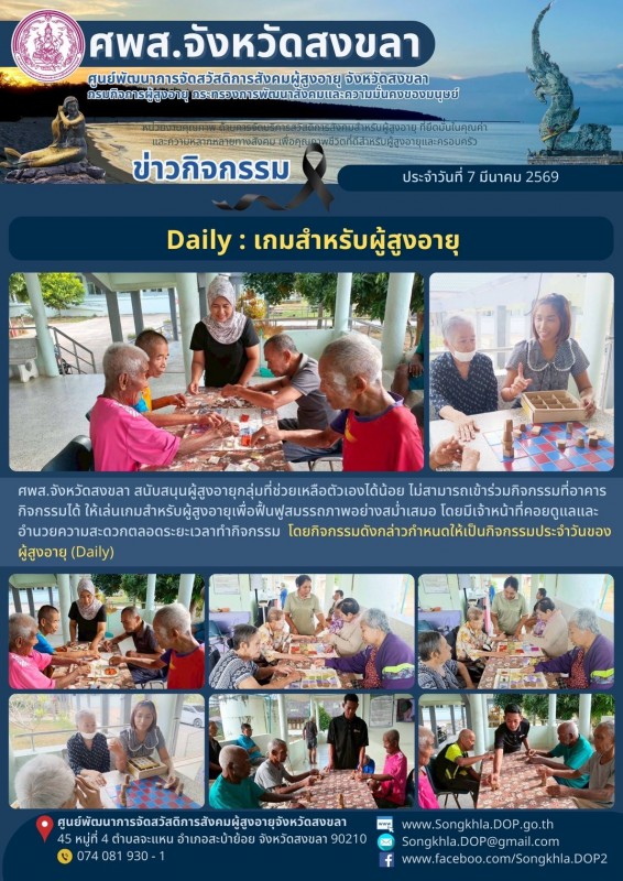 ศพส.จังหวัดสงขลา ขอรายงานกิจกรรม ประจำวันที่ 7 มีนาคม 2569 จำนวน 3 กิจกรรม ดังนี้