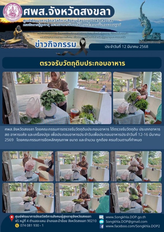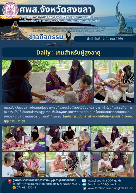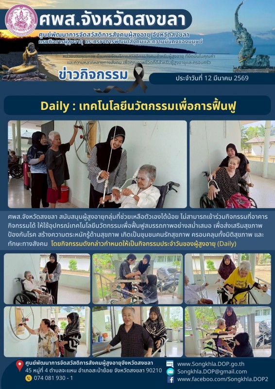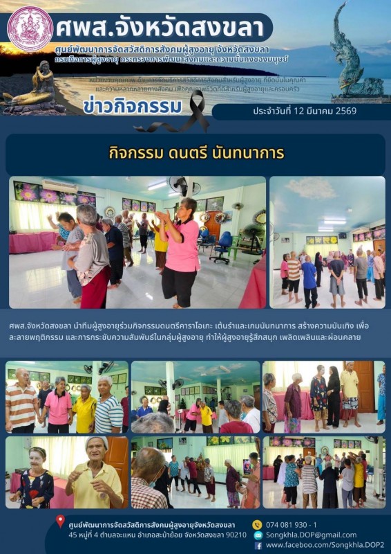 ศพส.จังหวัดสงขลา ขอรายงานกิจกรรม ประจำวันที่ 12 มีนาคม 2569 จำนวน 5 กิจกรรม ดังนี้